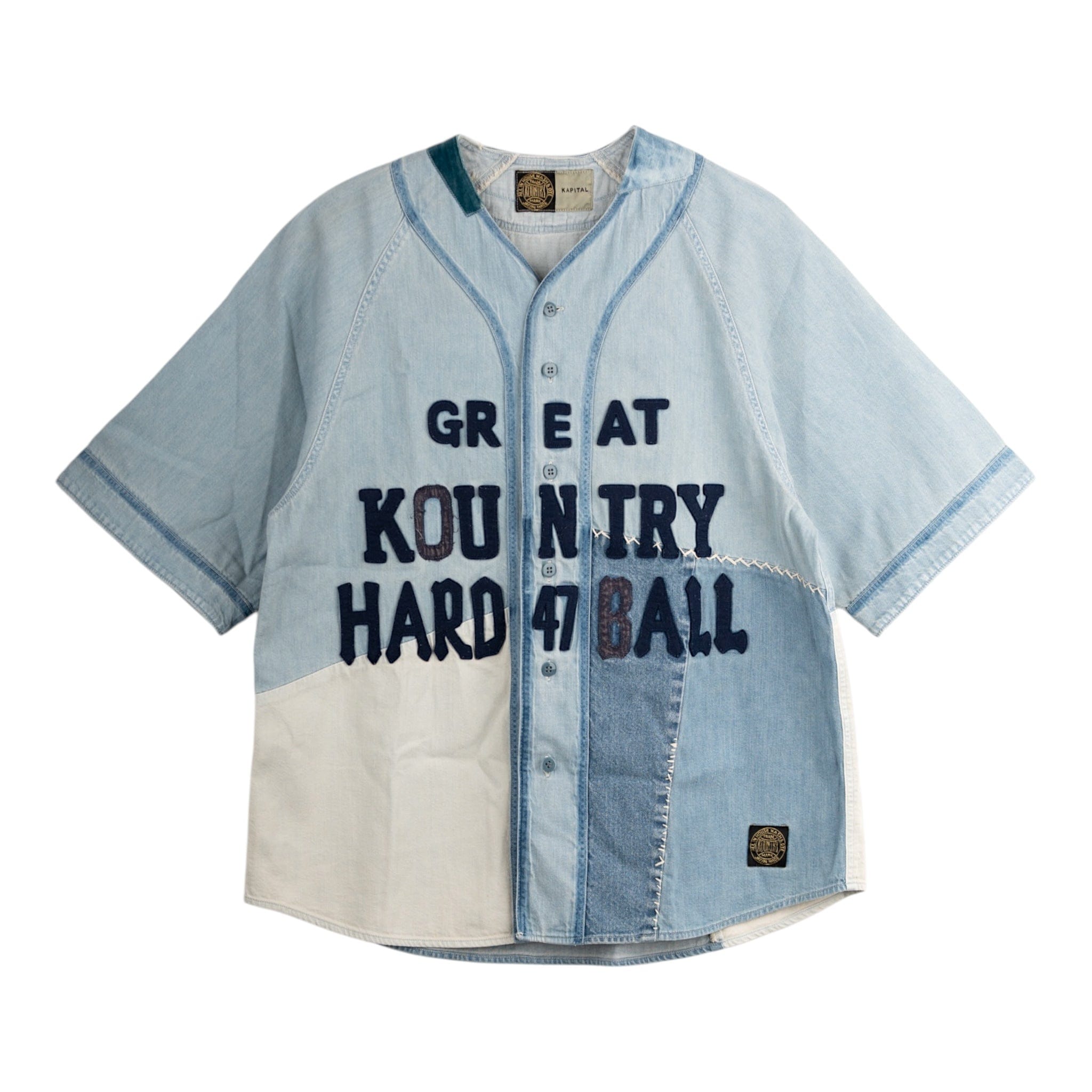 Kapital 8oz Deconstruction Great Kountry Hardball Embroidered Logo Denim Jersey Indigo Multi