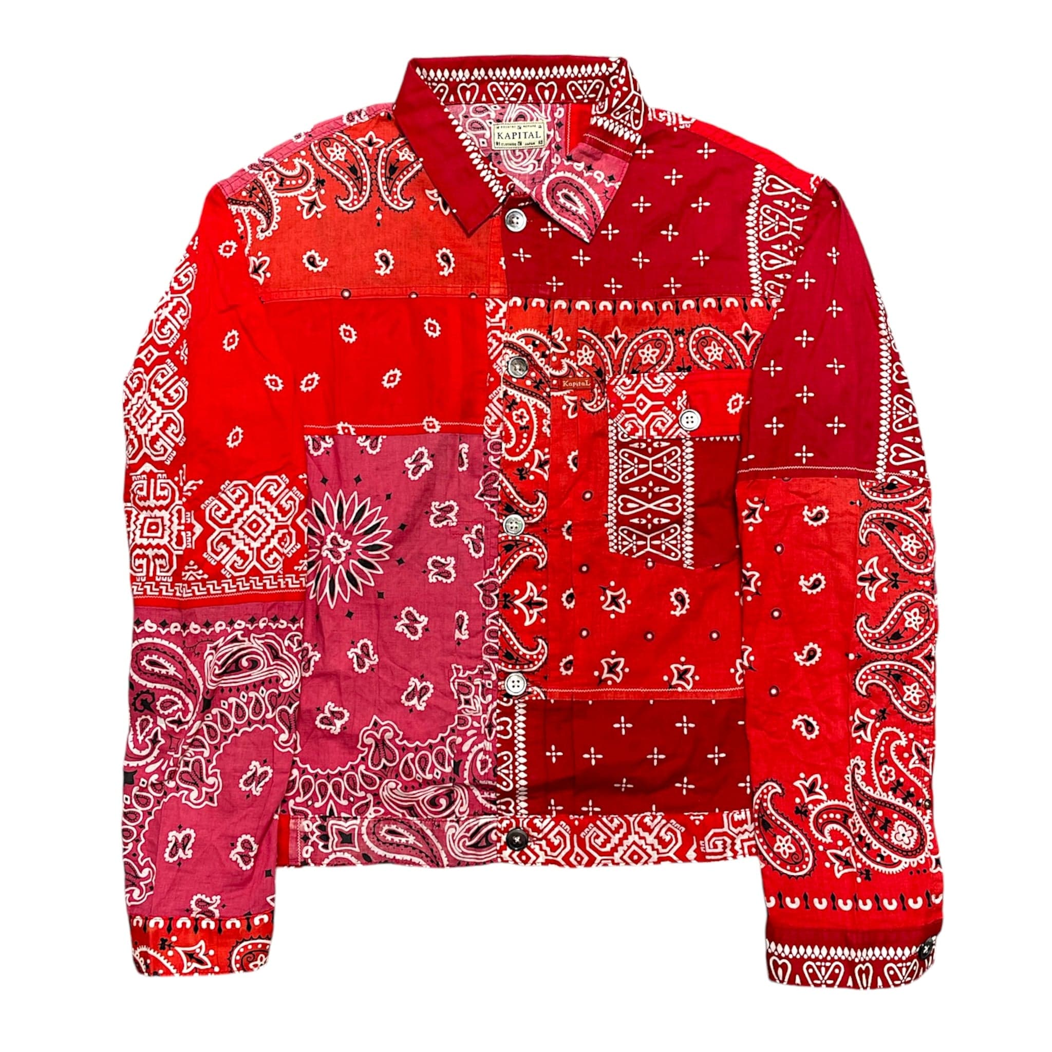 Kapital Bandana Patchwork Button Up Long Sleeve Shirt Red
