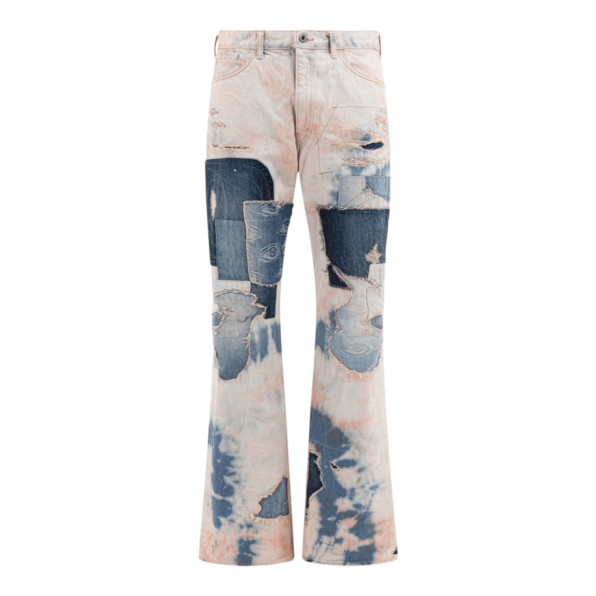 Kapital Crazy Dixie Repair Flared Jeans Tie Dye Indigo Multi