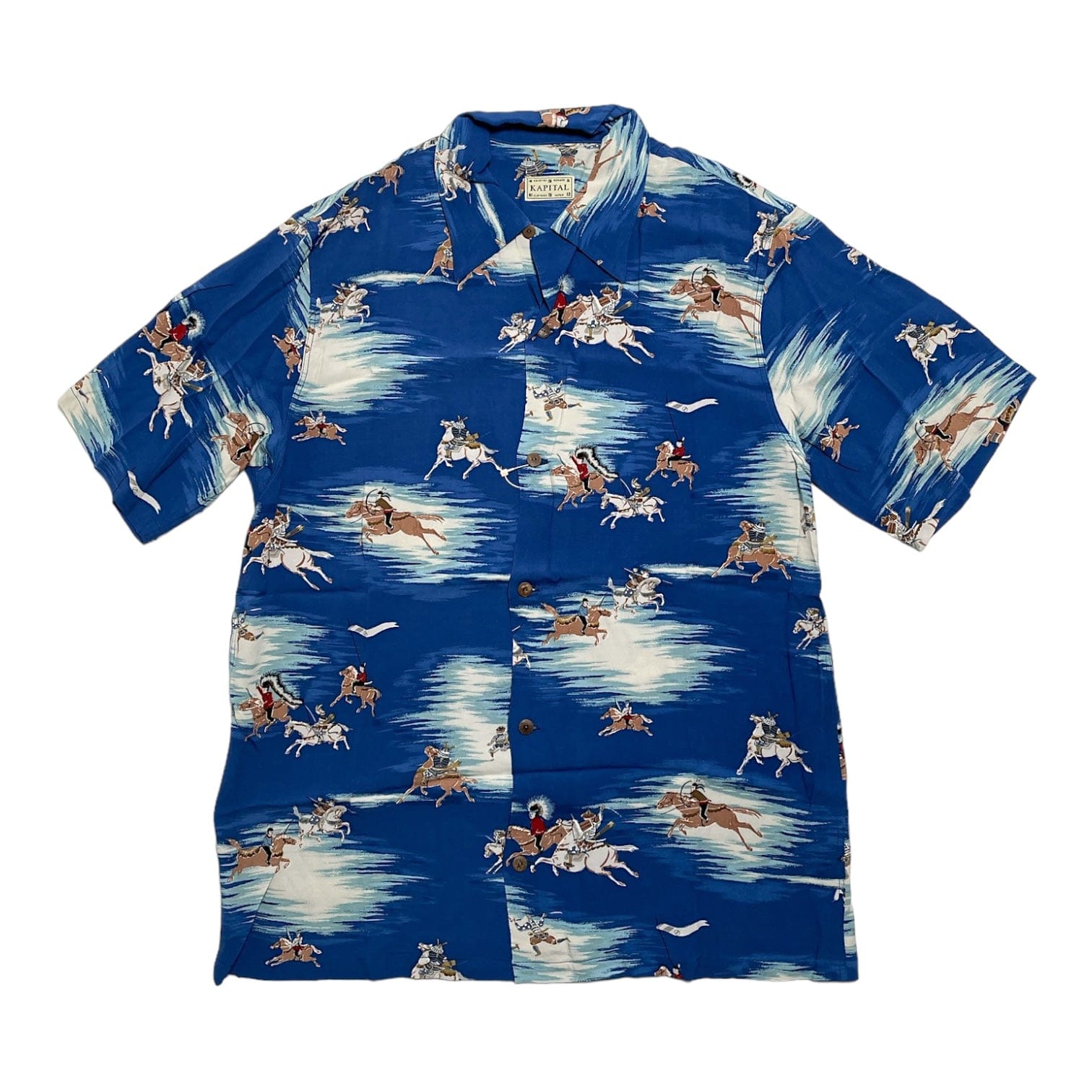 Kapital Kamikaze Aloha Rayon Short Sleeve Button Up Shirt Blue