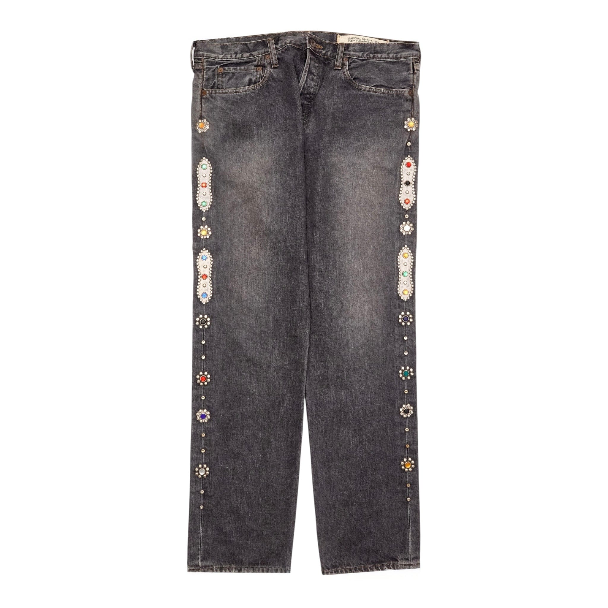 Kapital Kountry 14oz Studs Gem Stone Studded Embellished Denim Jeans Grey