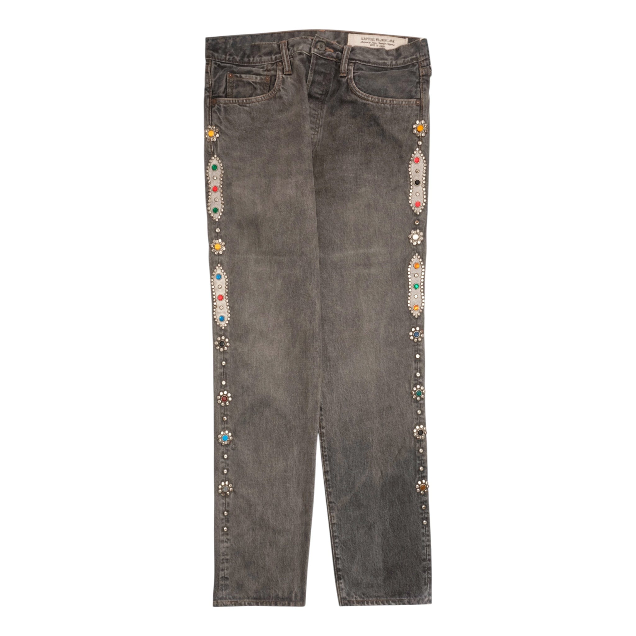 Kapital Kountry 14oz Studs Gem Stone Studded Embellished Denim Jeans Grey