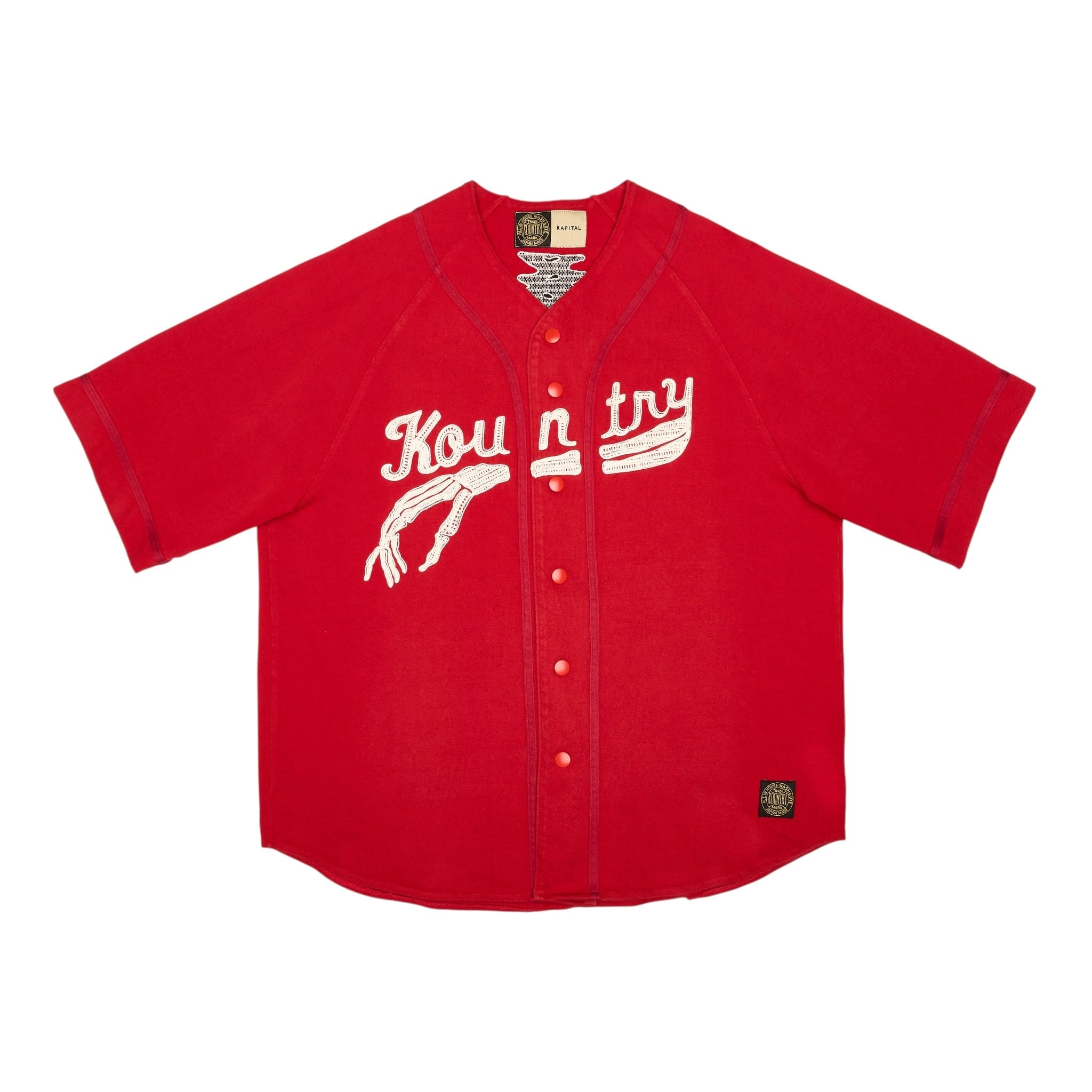 Kapital Embroidered Bones Logo Oversized Baseball Jersey Red White