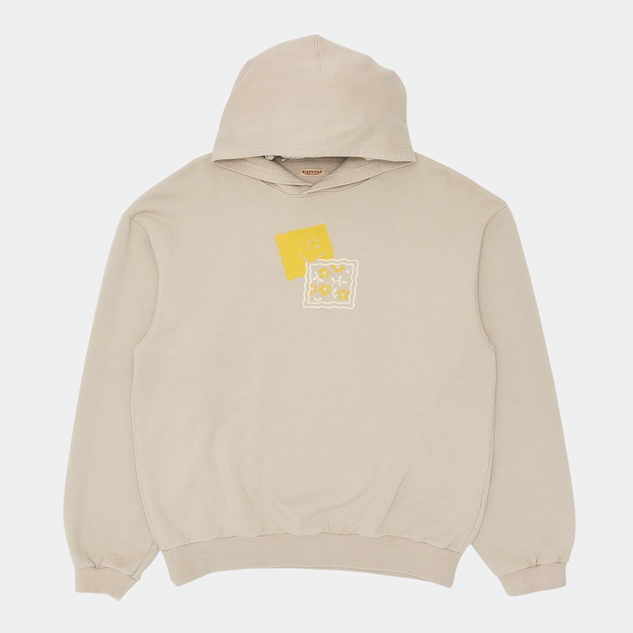 Kapital Peckish Bowy Logo Hooded Sweatshirt Beige Yellow White
