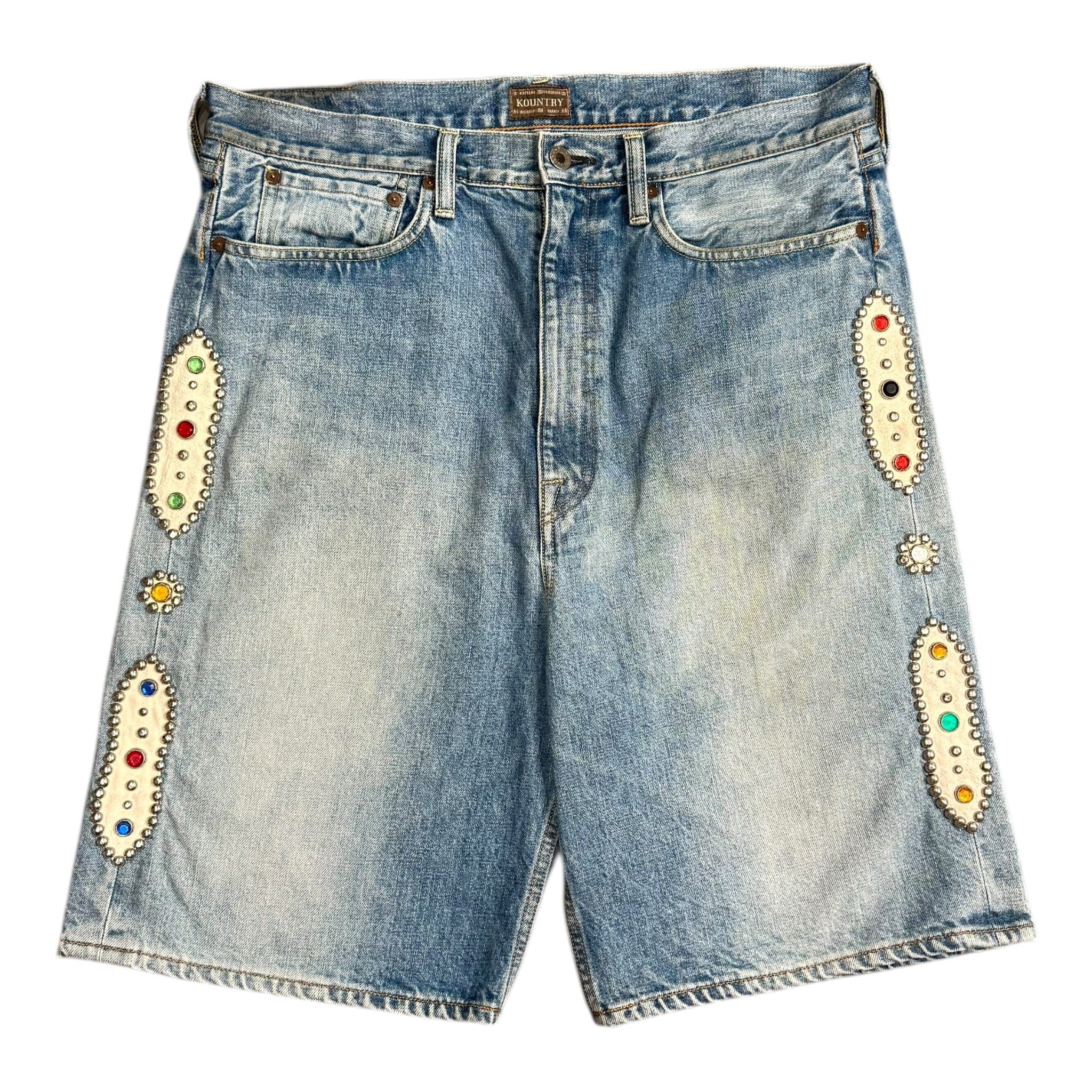Kapital Side Studded Jean Shorts Indigo Multi Pre-Owned