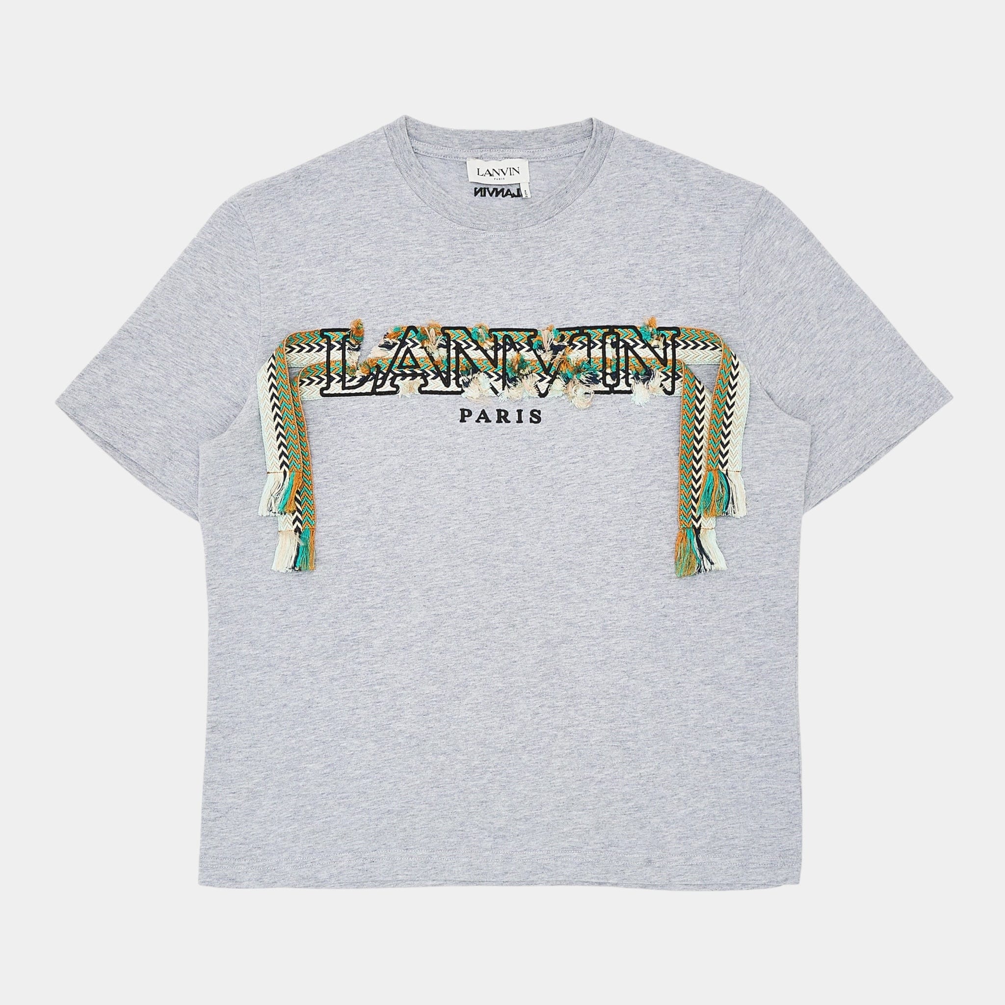 Lanvin Curb Lace Logo Short Sleeve Tee Shirt Grey Multi