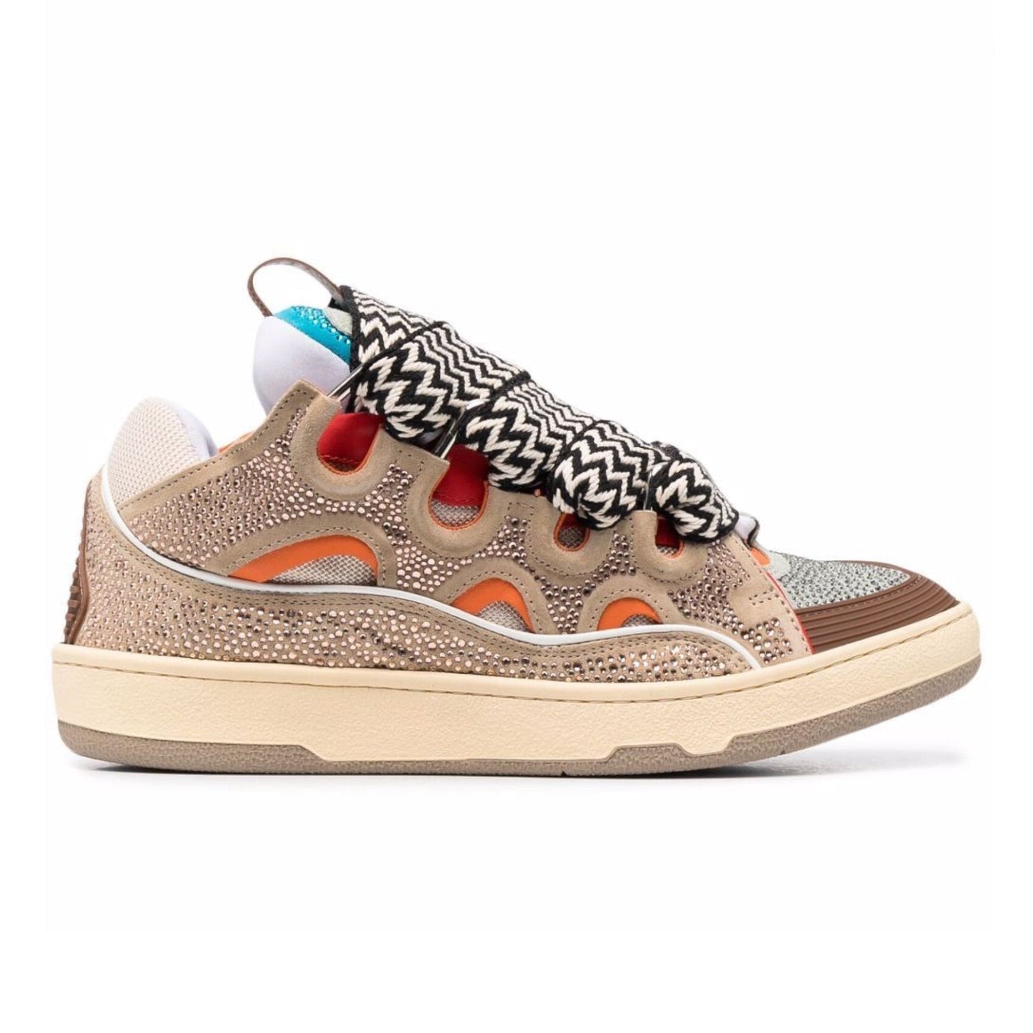 Lanvin Strass Leather Curb Sneaker Beige Brown Multi