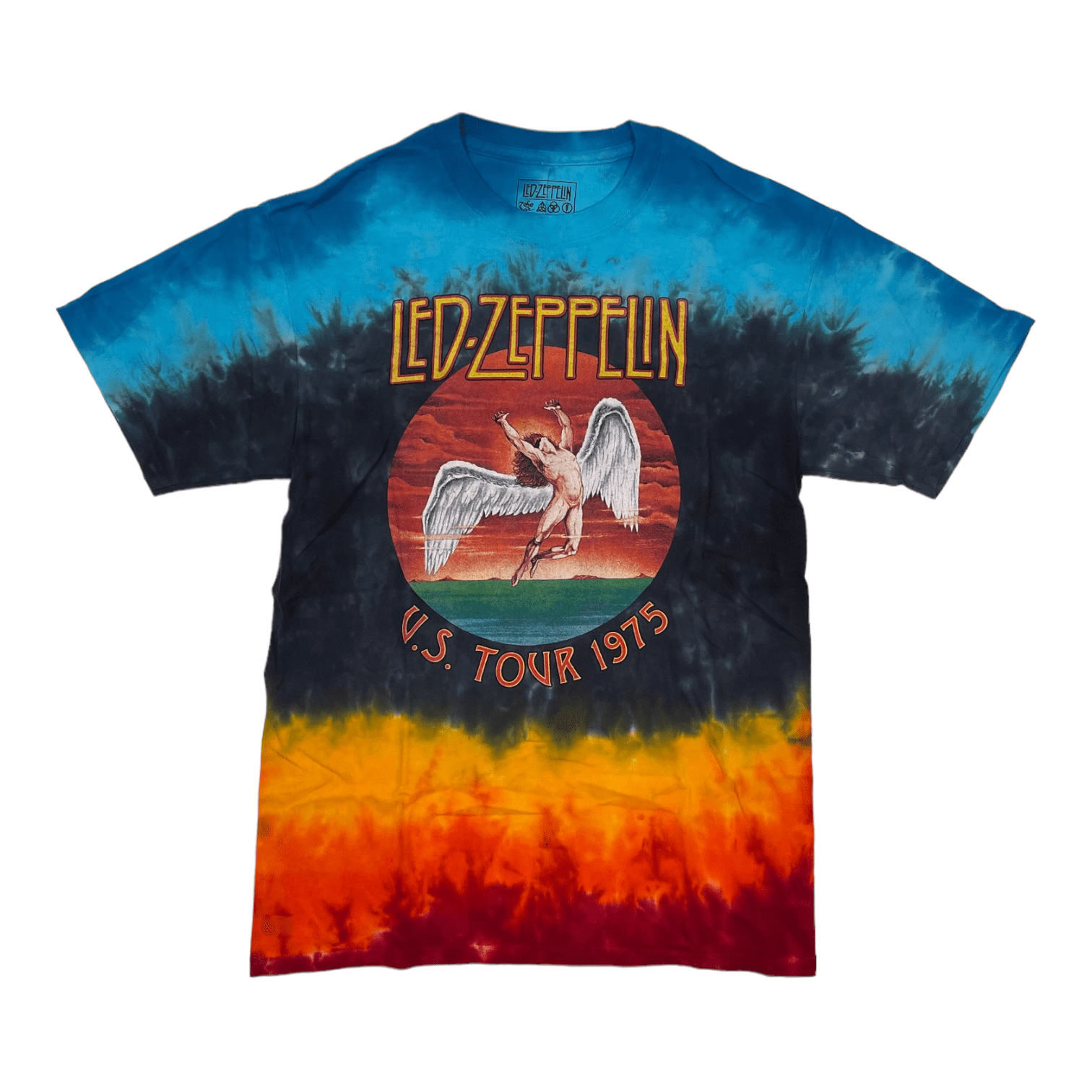 Vintage Led Zeppelin U.S Tour 1975 Logo Short Sleeve Tee Shirt Tie-Dye Multi