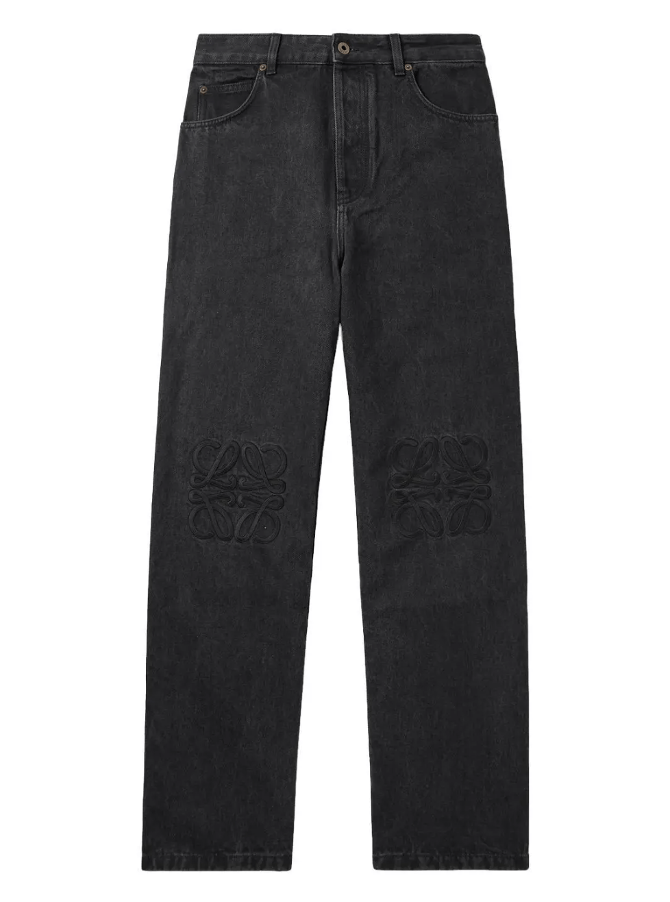 Jeans in medium-weight washed cotton denim featuring an Anagram embroidery at the knees.