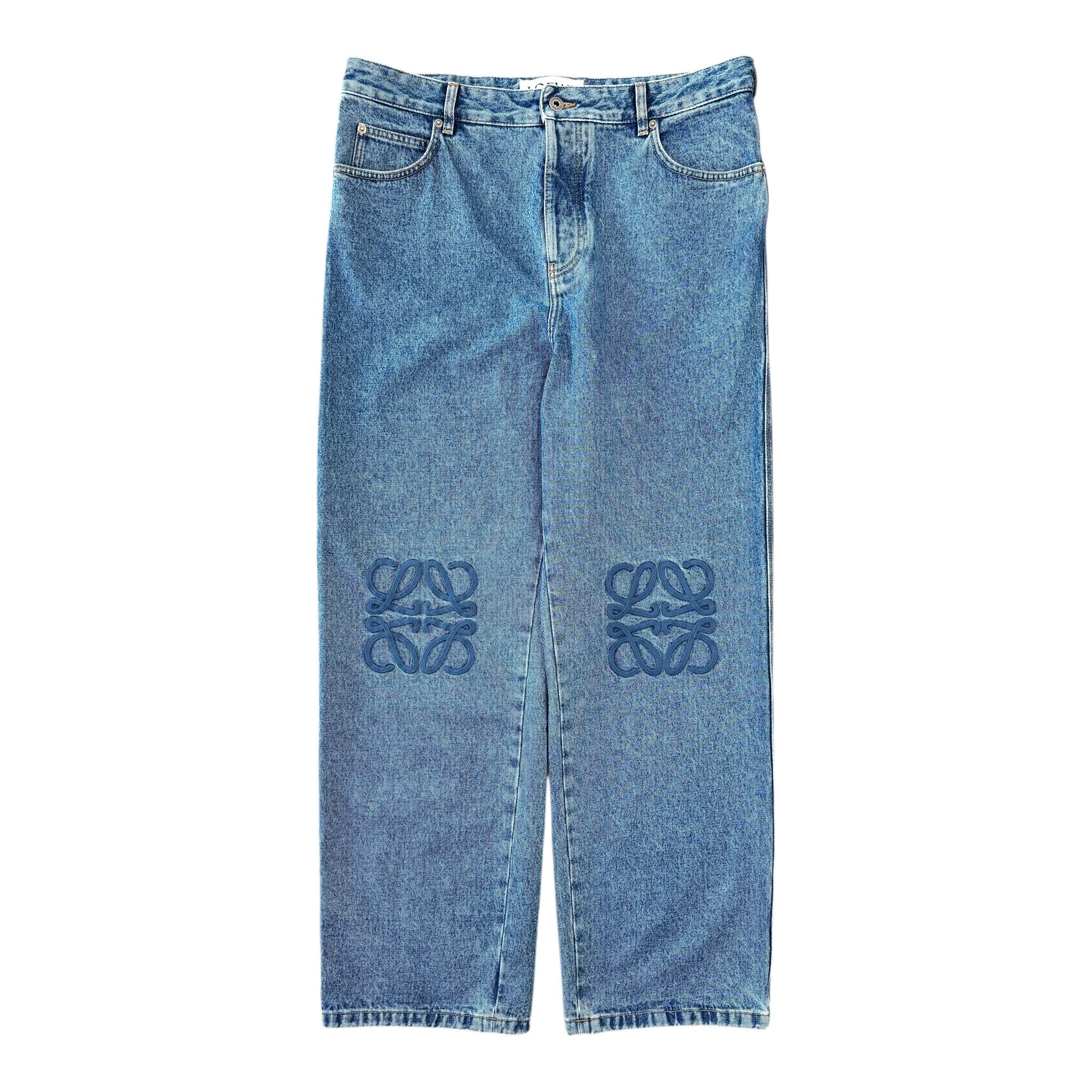 Jeans in medium-weight washed cotton denim featuring an Anagram embroidery at the knees.