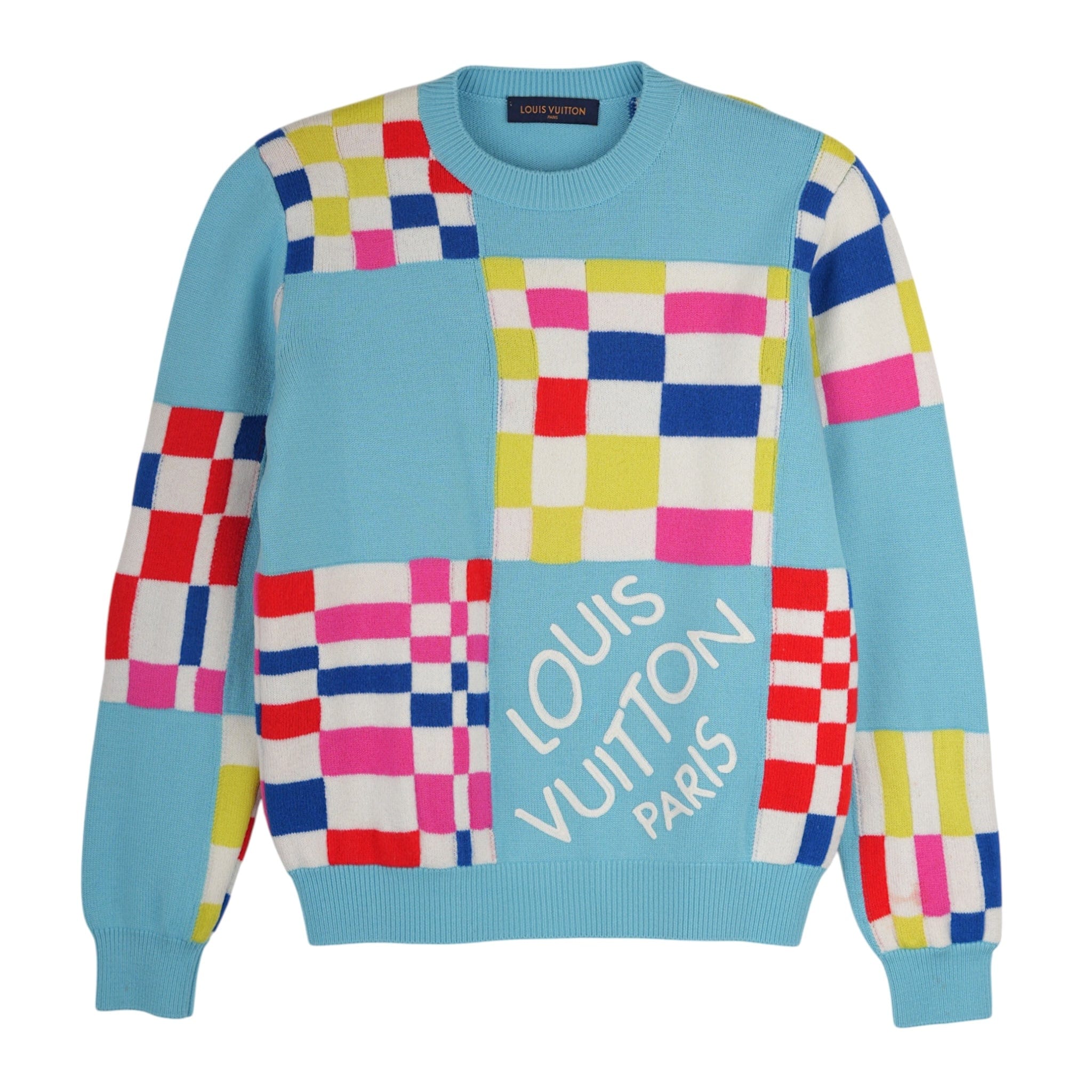 Louis Vuitton Distorted Damier Crewneck Sweater Blue Multi