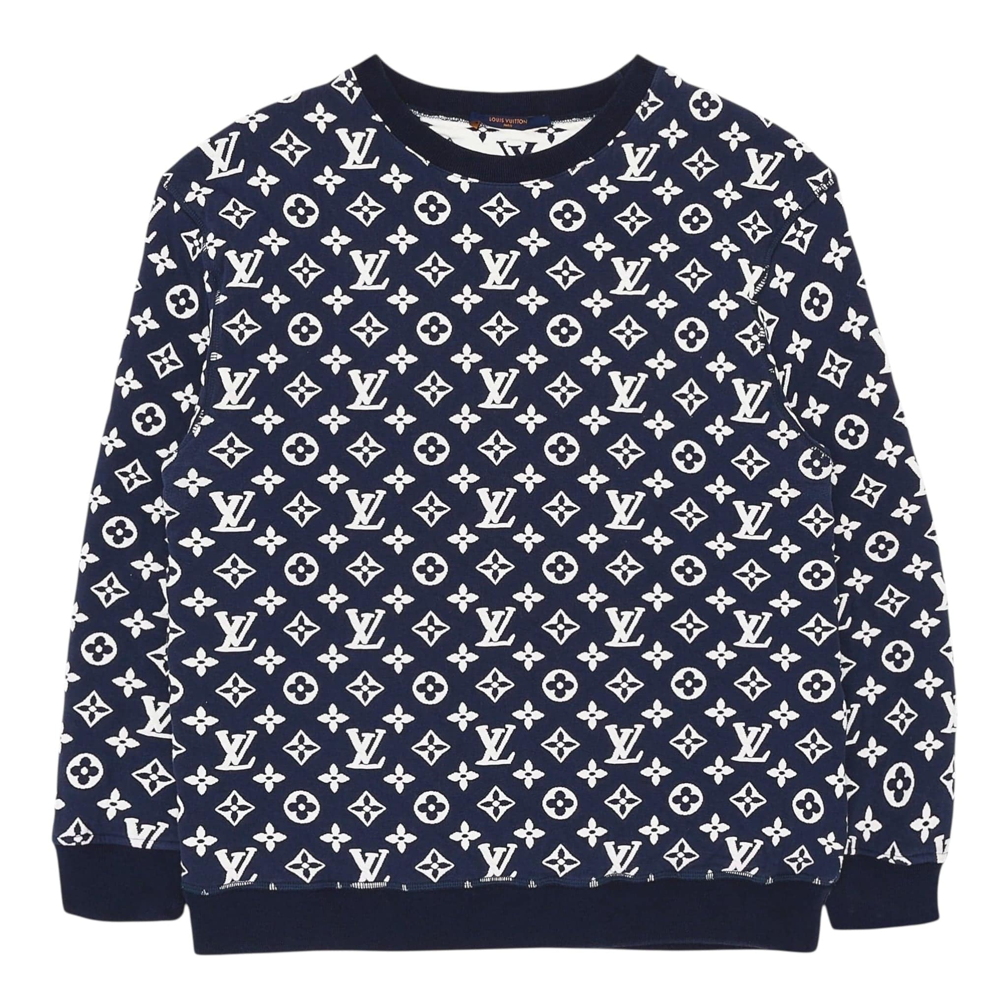 Louis Vuitton Full Monogram Jacquard Crewneck Sweatshirt Night Blue White