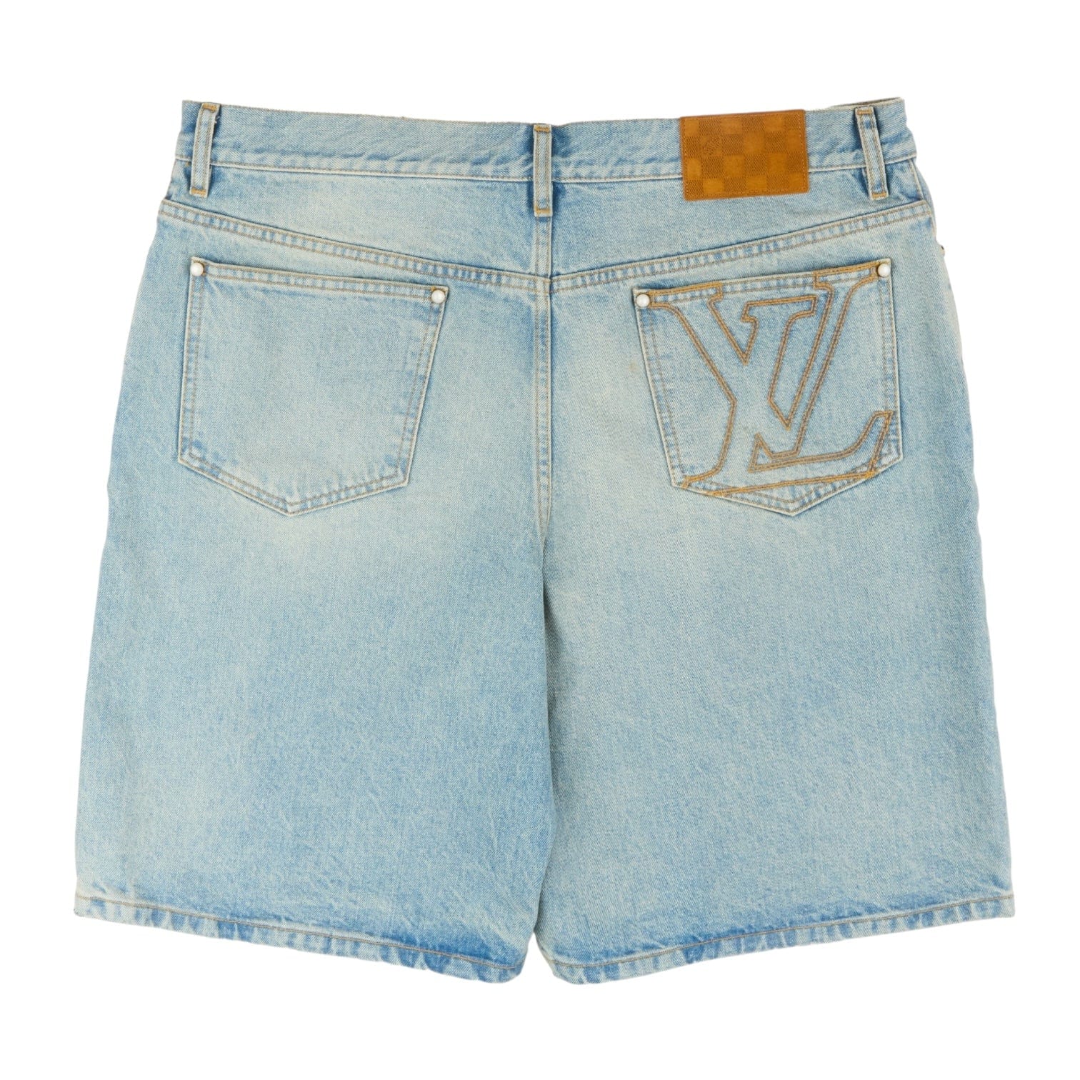 Louis Vuitton Embroidered LV Icon Logo Denim Shorts Indigo Tan