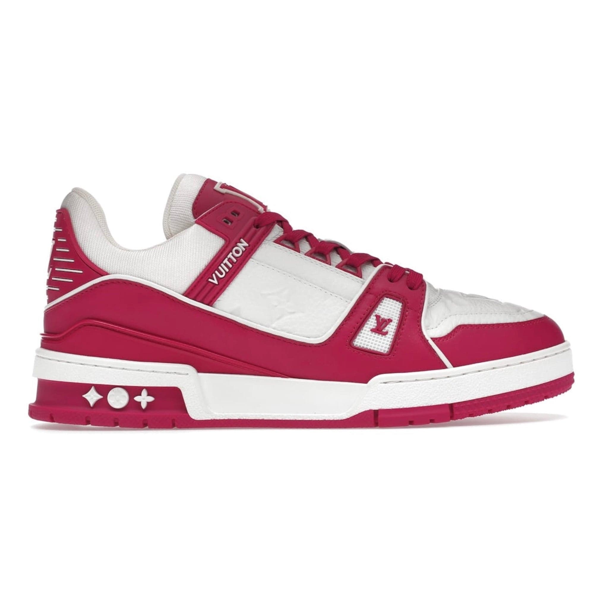This edition of the LV Trainer sneaker teams smooth calf leather with grained calf leather embossed with Louis Vuitton's signature Monogram pattern. This cult model was designed by Virgil Abloh, who drew inspiration from vintage basketball sneakers. It is revisited in pastel colors highlighting the elaborate construction of its upper, which takes seven hours to stitch.