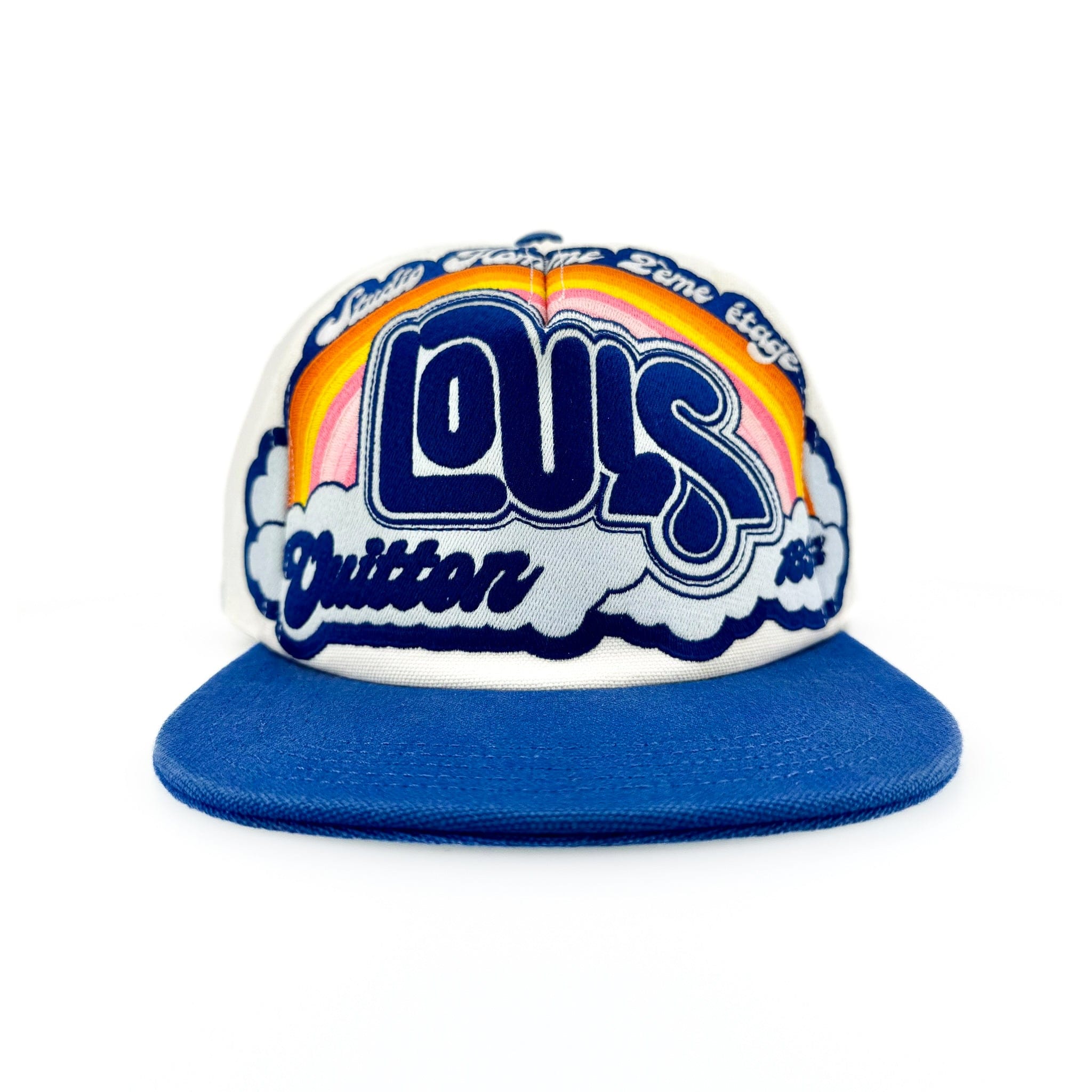 Louis Vuitton Embroidered Rainbow Logo Baseball Hat White Blue Multi