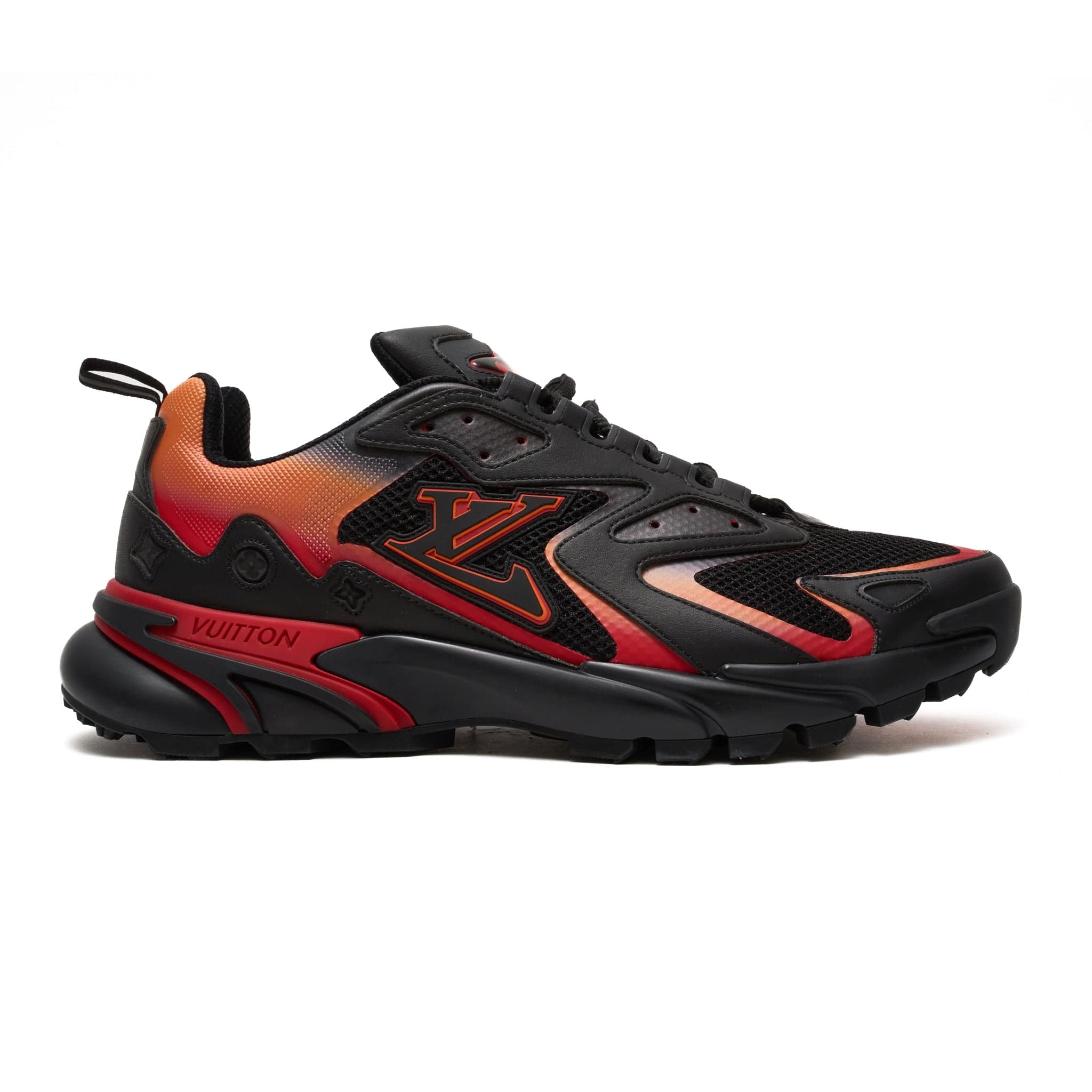 Inspired by running shoes, the LV Runner Tatic sneaker was first seen at Louis Vuitton's Spring-Summer 2022 men's show. This version comes in technical mesh and calf leather with bold color gradations. It is signed with a dynamic LV Initials logo and reflective Monogram Flowers on the side, while the outsole bears the Vuitton signature.
