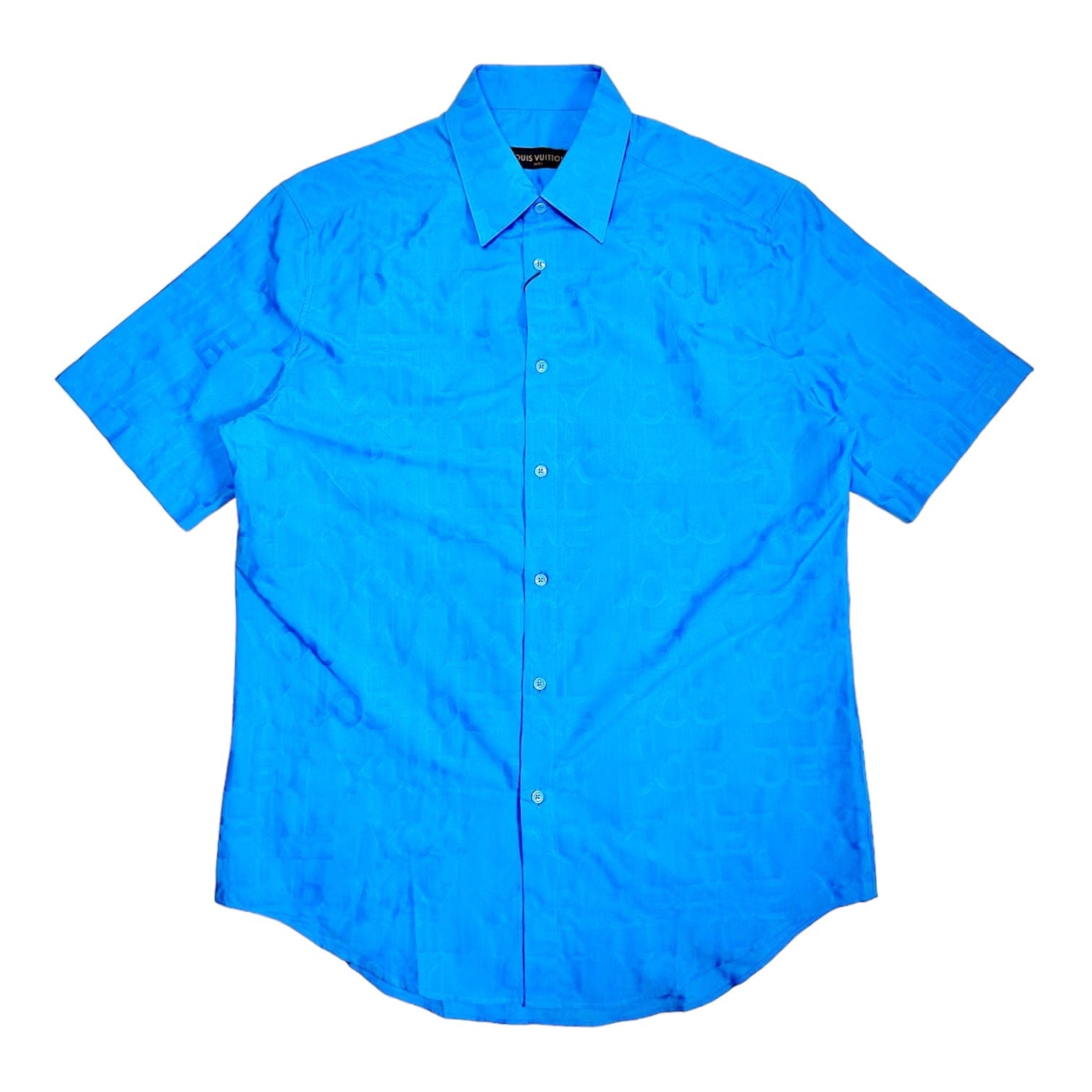 Louis Vuitton Tonal Letter Button Up Short Sleeve Shirt Blue