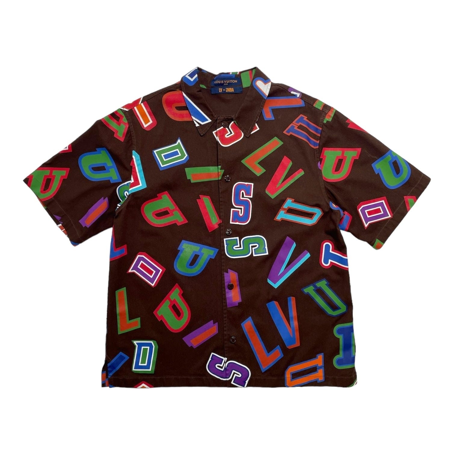 Louis Vuitton x NBA Basketball Letters Button Up Shirt Brown