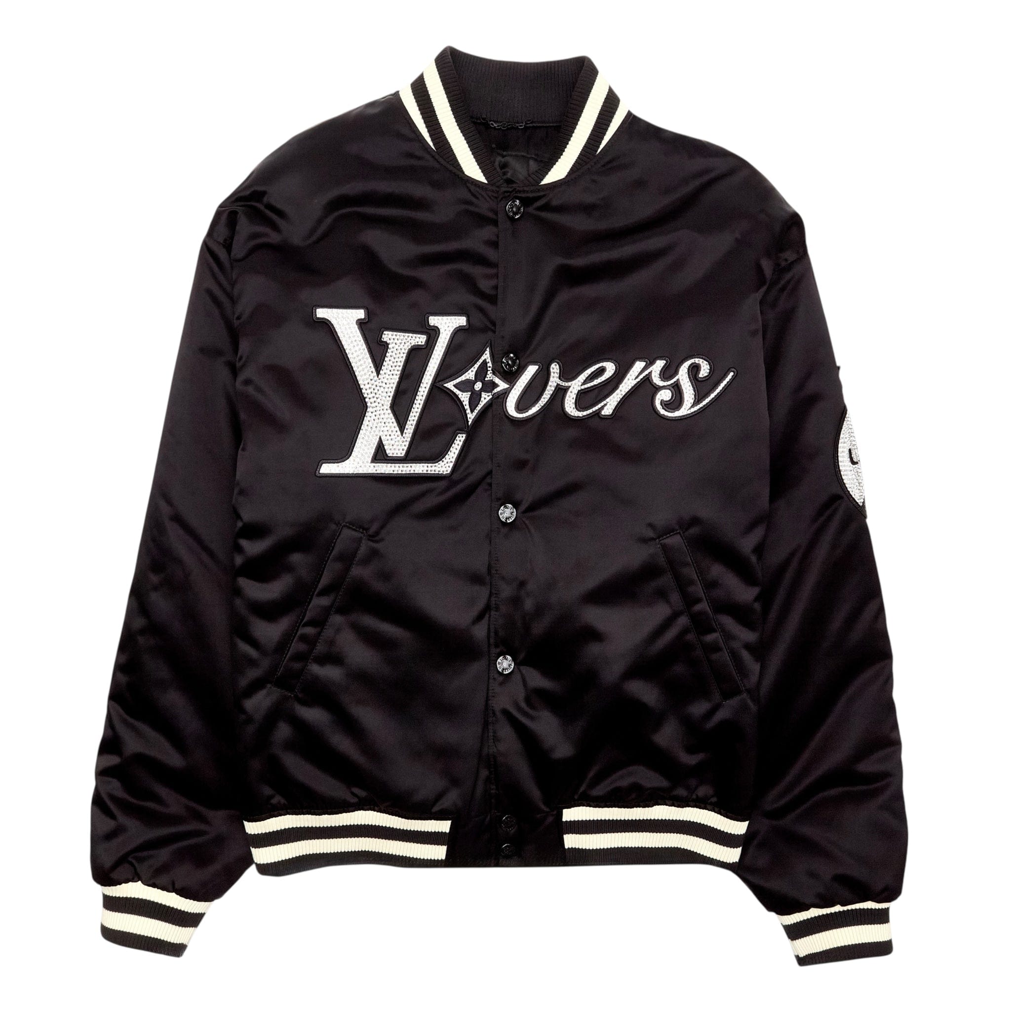 Louis Vuitton x Pharrell Williams Embroidered Crystal Lovers Logo Nylon Baseball Jacket Black Multi