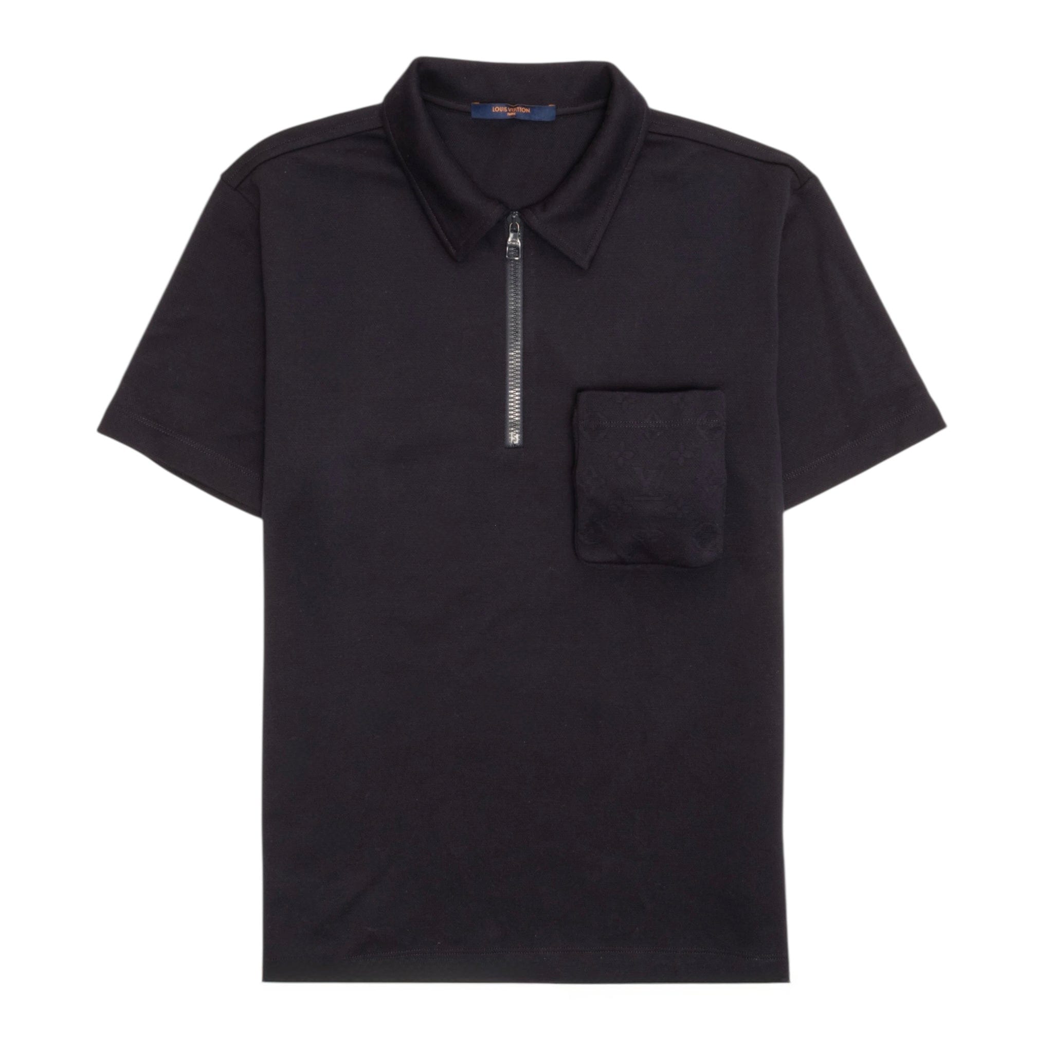 Louis Vuitton Monogram Pocket Zip Up Short Sleeve Polo Tee Shirt Navy Blue