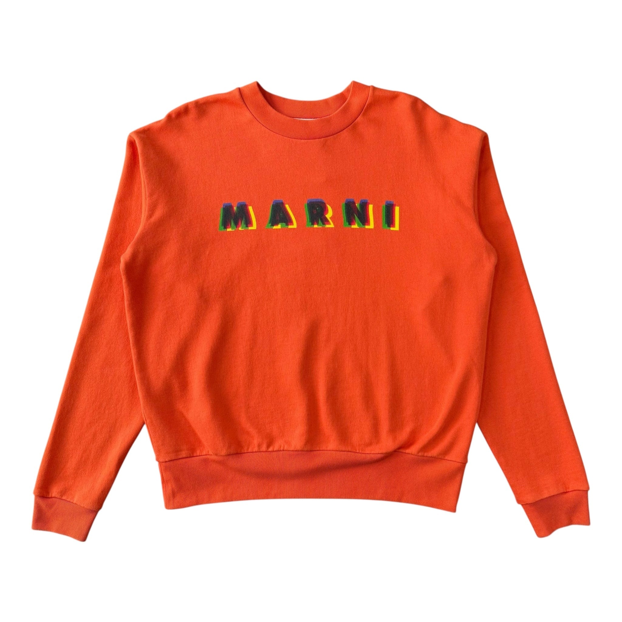 Logo-print cotton sweatshirt from MARNI featuring carrot orange, cotton, logo print at the chest, crew neck, long sleeves and ribbed cuffs and hem.