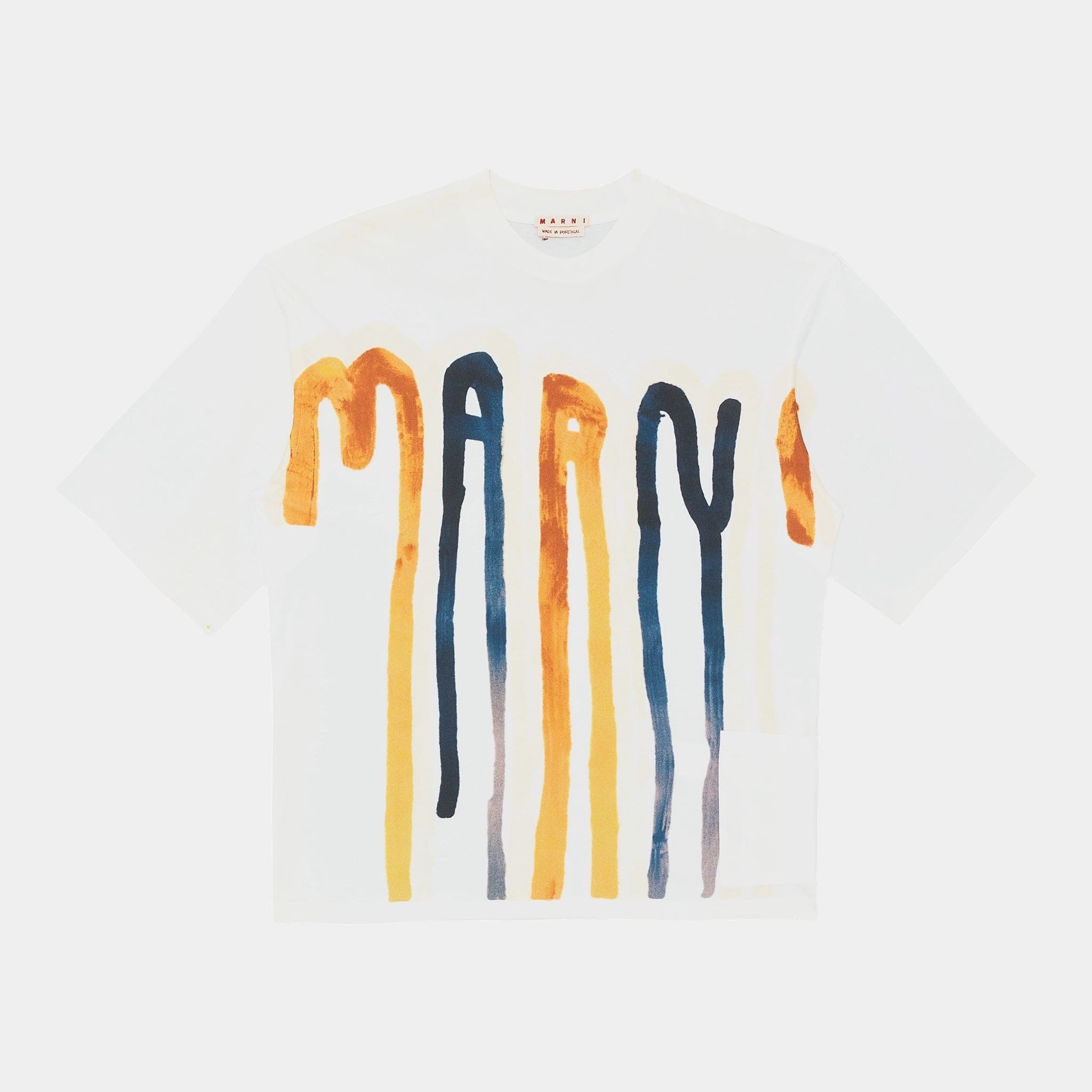 Marni Dripping Logo Short Sleeve Tee Shirt White Multi
