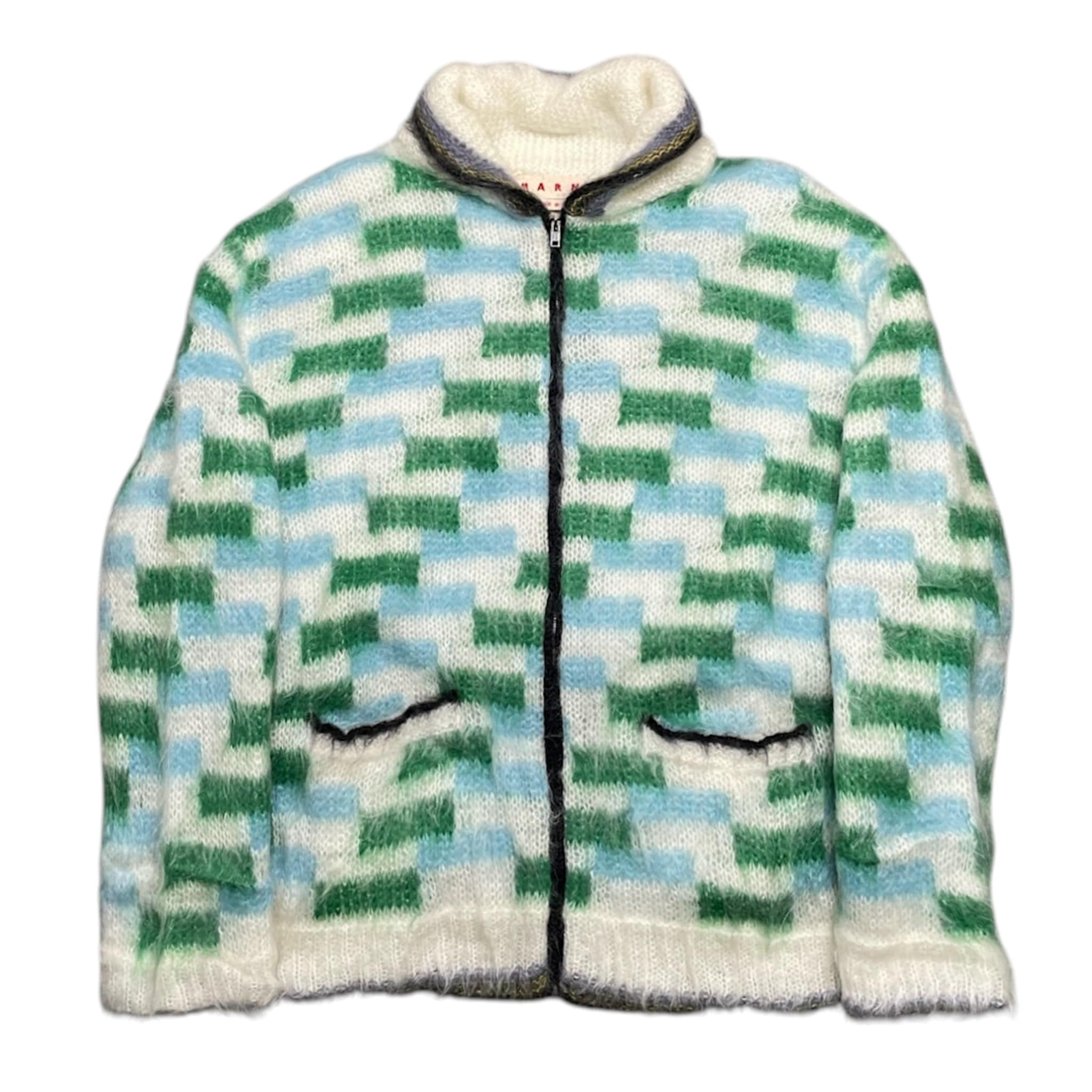 Padded jacket in brushed mohair with multicolour stripes. Two-way zip fastening. High neck with inlaid checks. Pockets. Loose fit. Made in Italy.