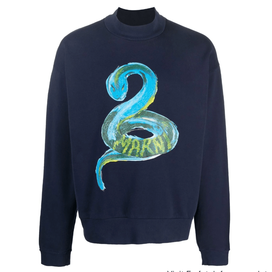 Marni Python Brushed Logo Crewneck Sweatshirt Ink Blue