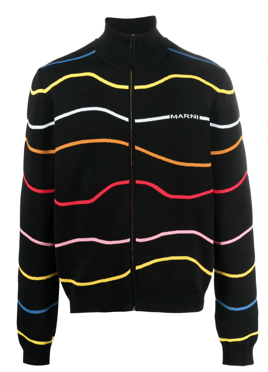 Marni Stripe Pattern Cardigan Black Multi
