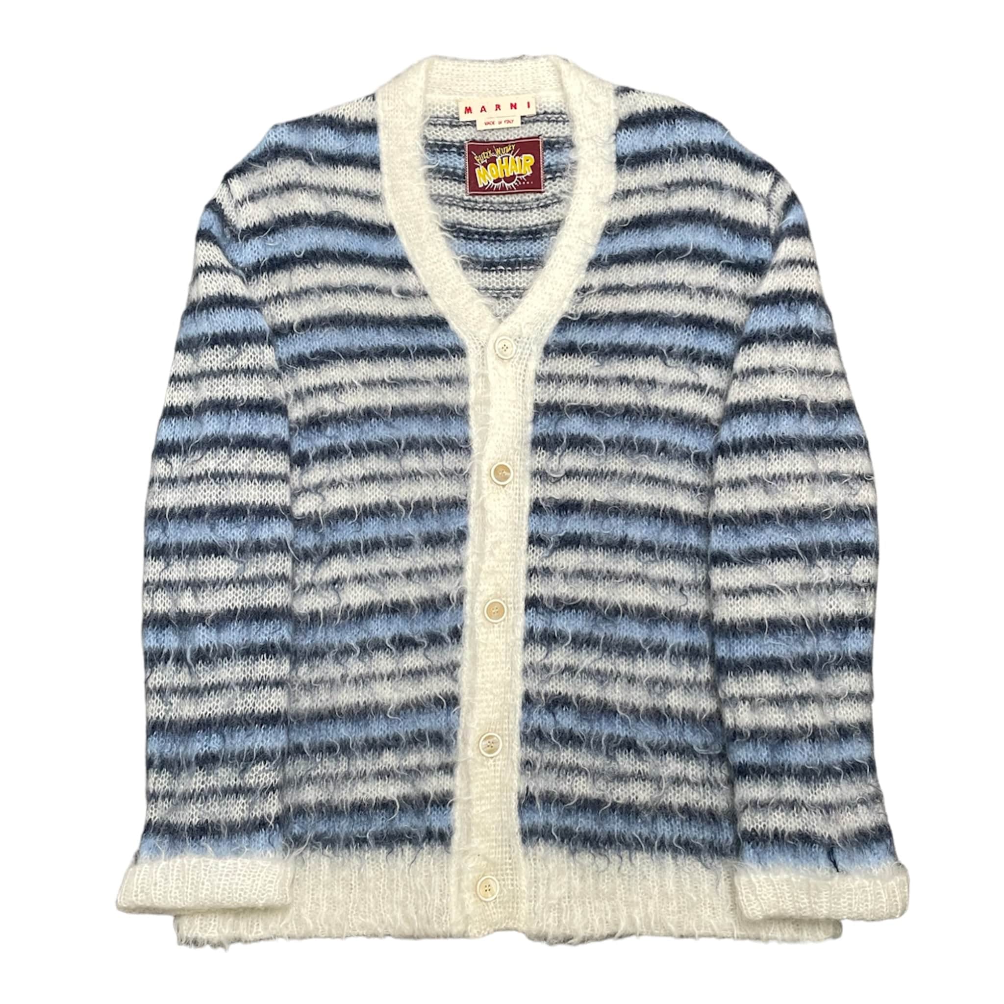 Marni Striped Mohair Cardigan Lily White Blue Pre-Owned