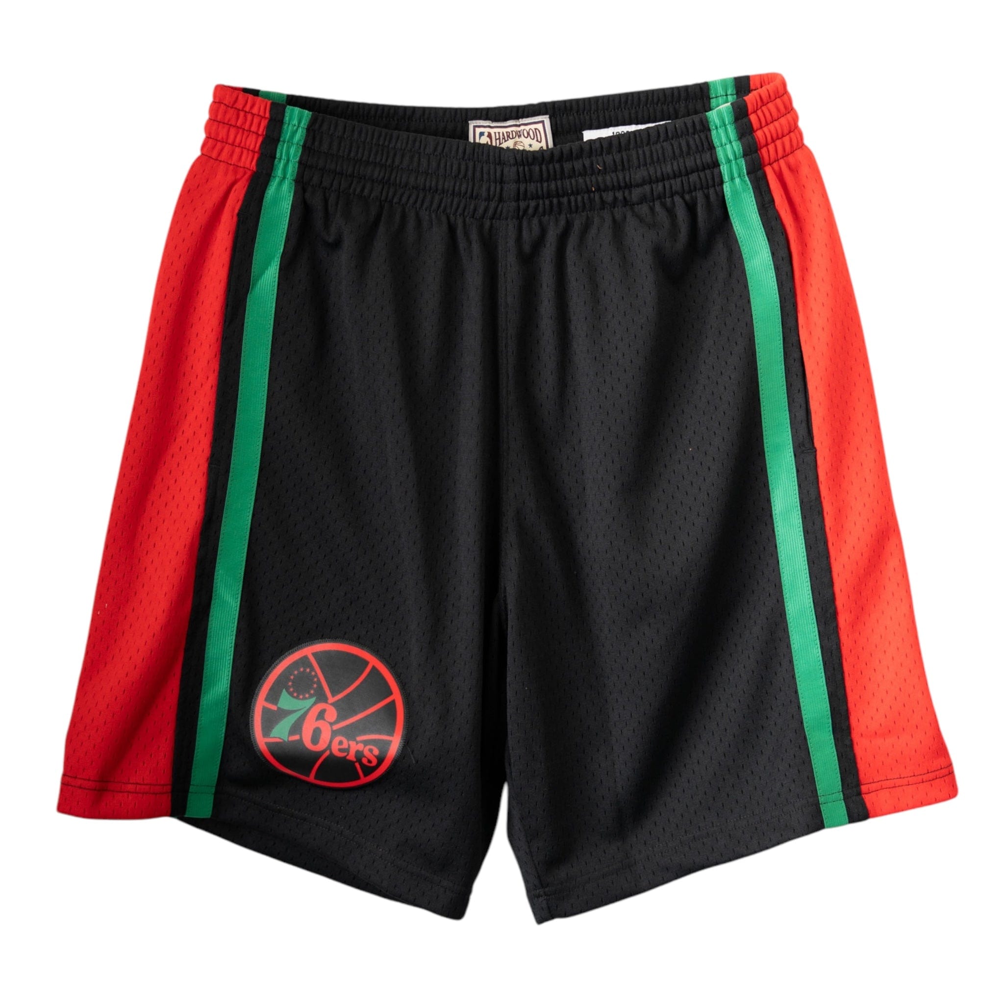 Origins NYC offers this pair of new Mitchell & Ness Philadelphia 76ers Christmas Day Swingman Shorts in Black.