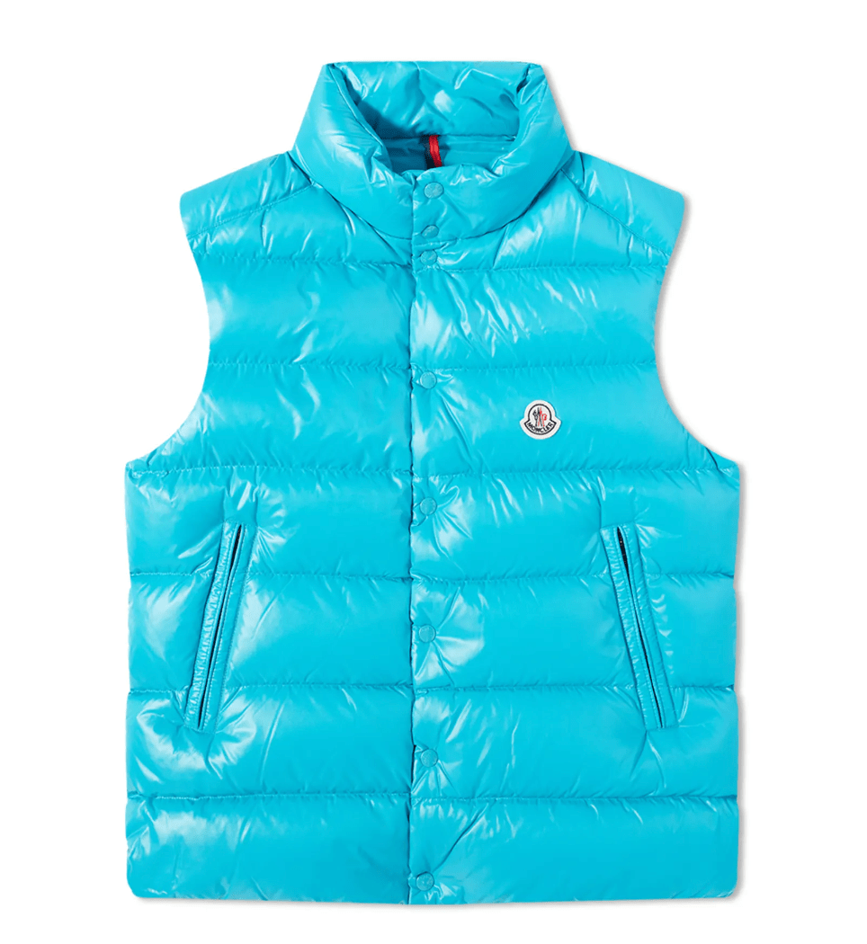 Perfectly combining the classic and contemporary, this blue Tibb gilet from Moncler is inspired by exaggerated silhouettes of the ‘80’s. It’s made from glossy nylon laqué fabric and filled with warming down, then complete with the brand’s logo patch at the chest.