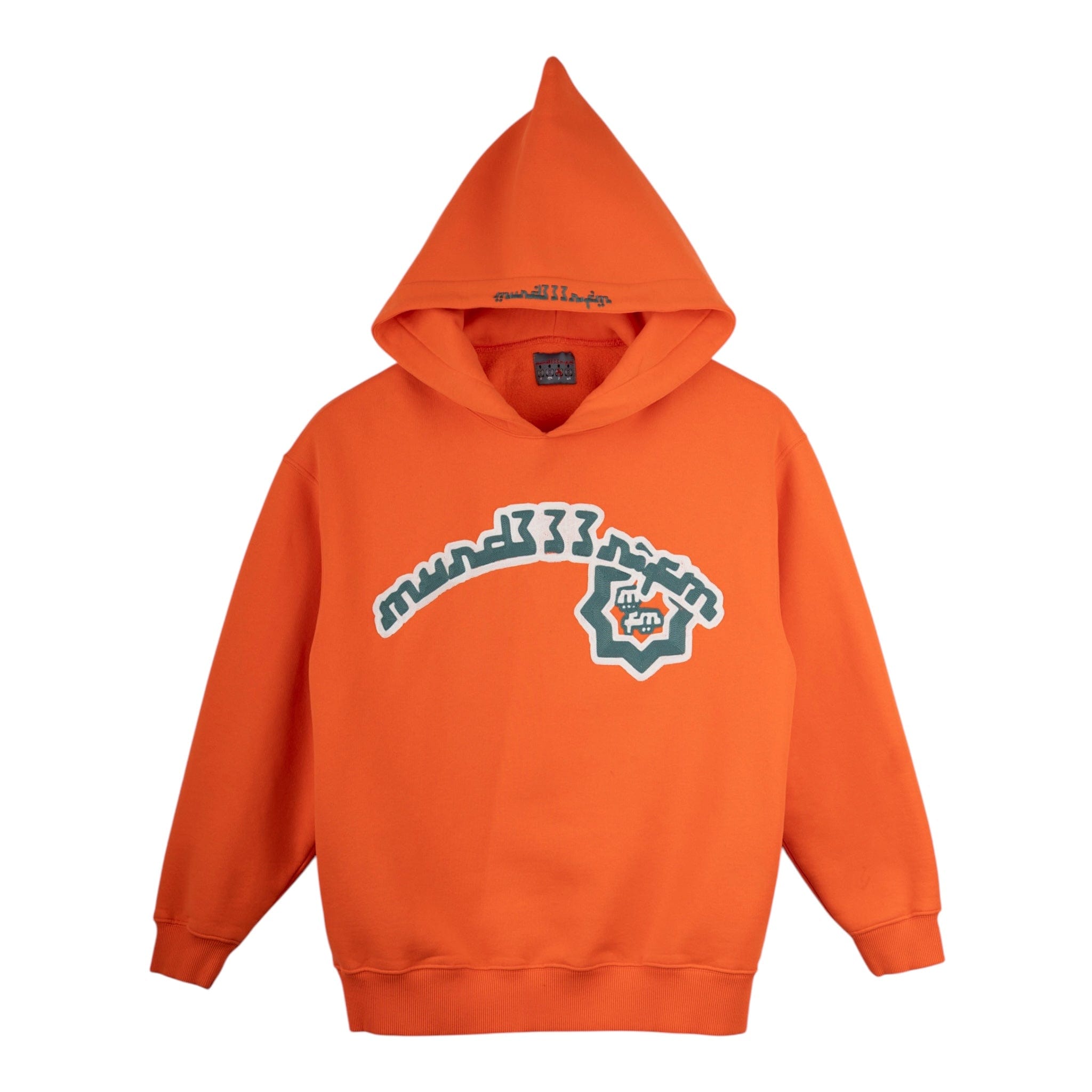 MURD333R FM Chainstitch Cone Backwards Hooded Sweatshirt Neon Orange Green White