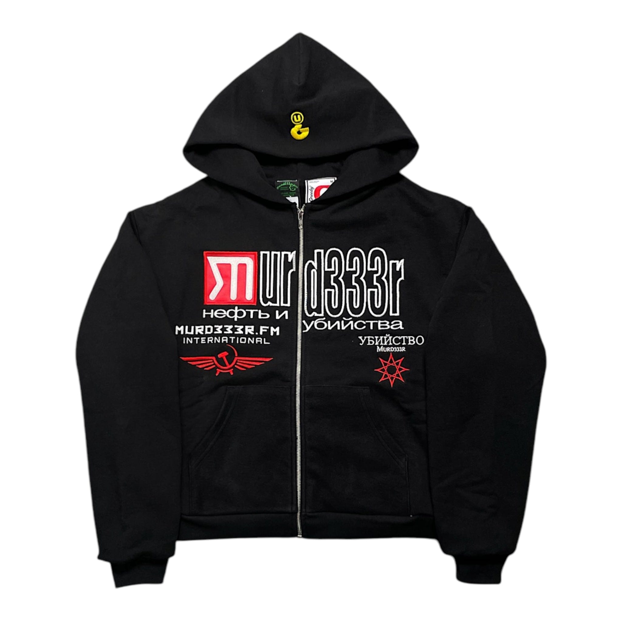 MURD333R FM x Greedy Unit Double Layer Hooded Sweatshirt Black Multi