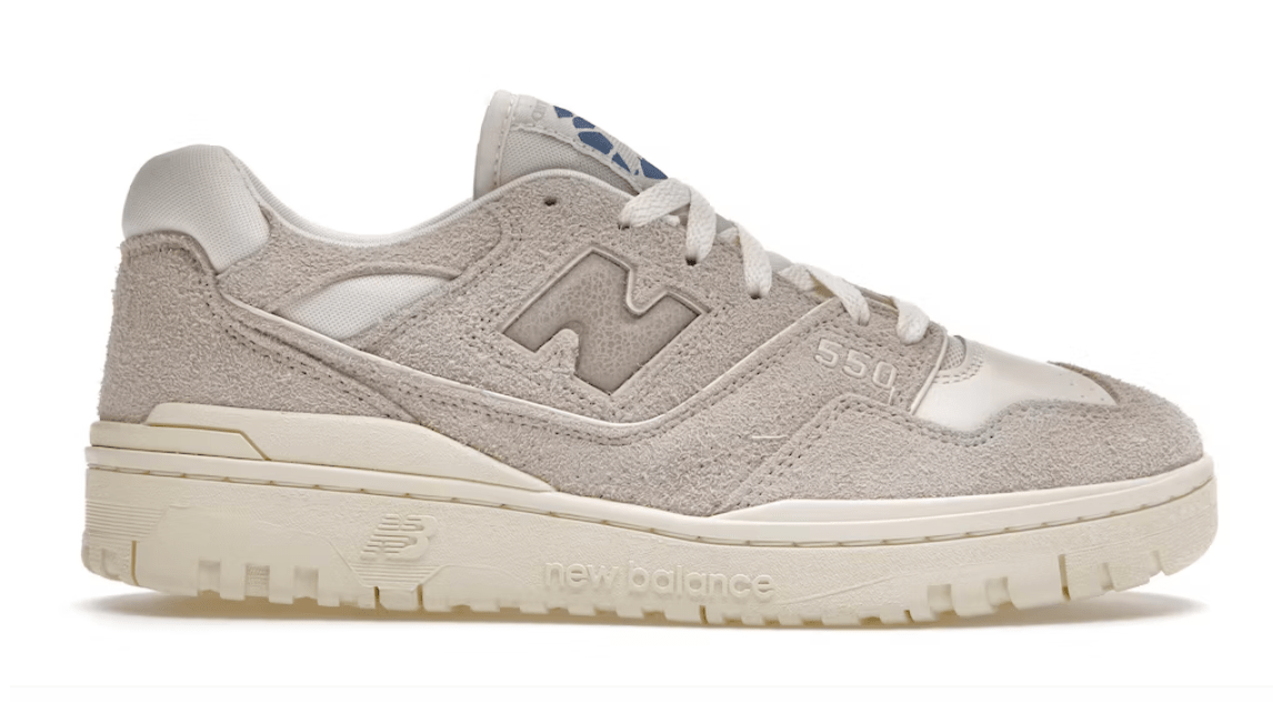 The New Balance 550 Aime Leon Dore Grey Suede takes on a 1980s retro hoops design and neutral colorway.