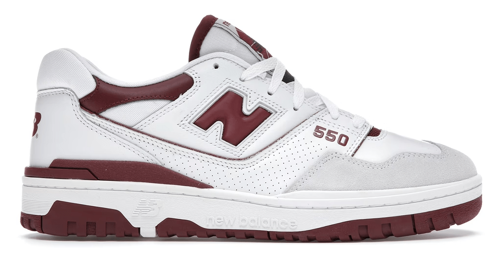 Origins NYC offers this pair of New Balance 550 in Sea Salt Burgundy.