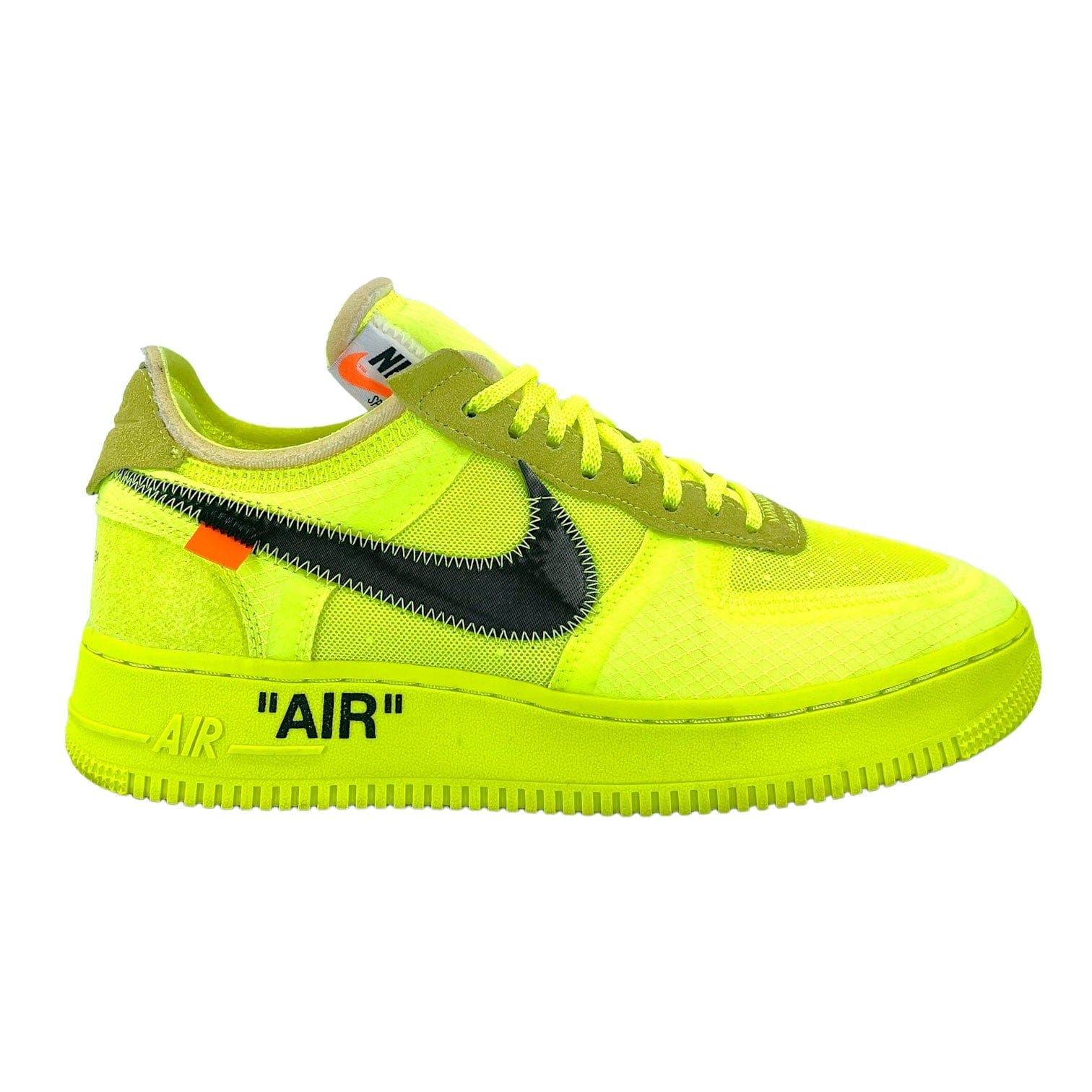 Be more lit than a lightning bolt while wearing Nike and Virgil’s Air Force 1 Low Off-White Volt. This AF1 comes with a volt upper, black Nike "Swoosh", volt midsole, and volt sole. These sneakers released in December 2018 and retailed for $170.