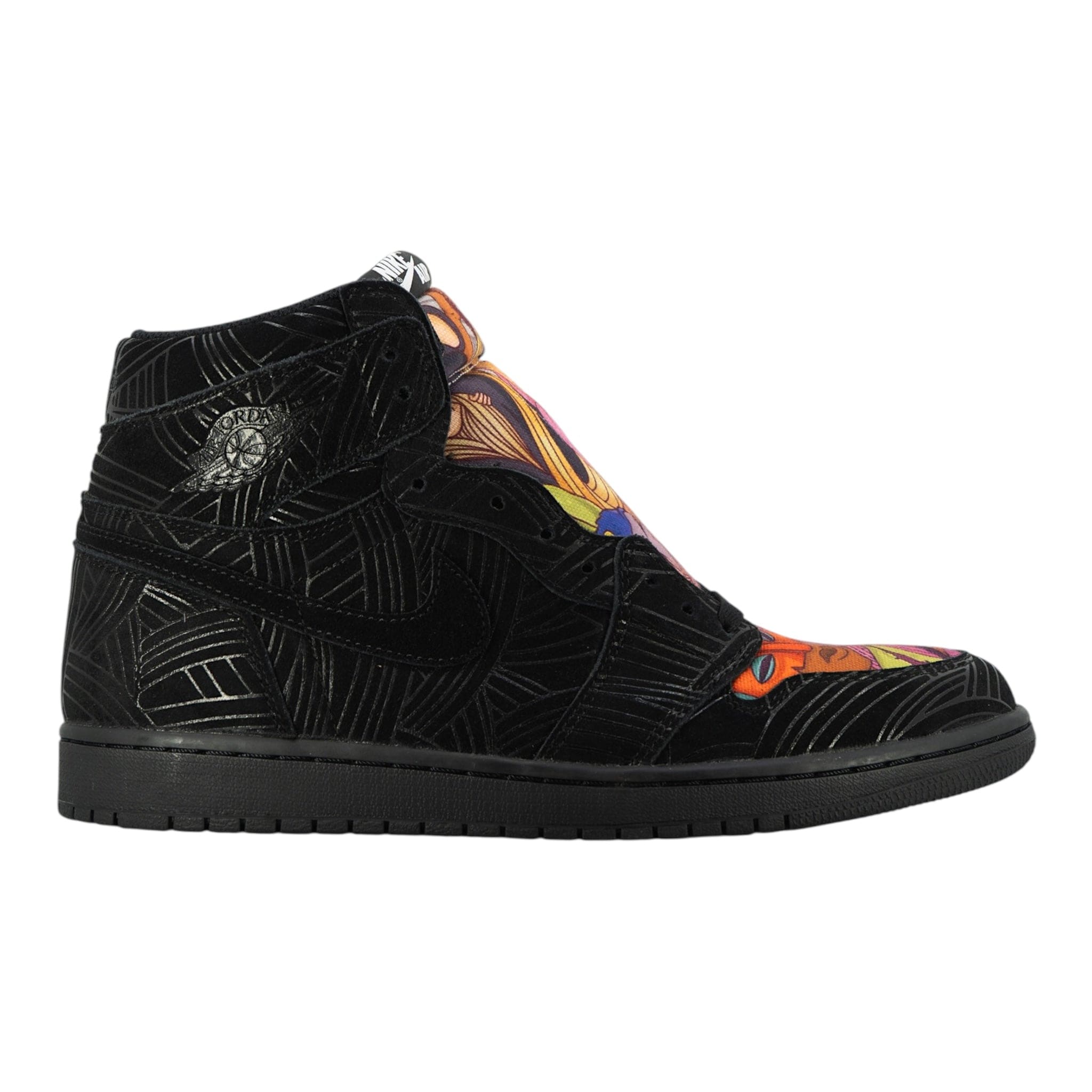 This Air Jordan 1 Retro High OG is known as the "Pomb" edition. They are a part of the "Los Primeros" Collection that was released during Latin Heritage Month in 2017. They come in black and multi-color, drawing inspiration from Brazilian street artist, Pomb. The sneaker pays tribute to his latino roots with a black-based premium suede upper, multi-color graphic on the toe box and tongue, Pomb's name embroidered on the back heel and "Nike Air" branding on the tongue tag. A limited release, they were available at select Jordan Brand retailers worldwide on October 13th, 2017. They retailed for $160 and were available in men's sizes. If you're looking to celebrate the Latino community, look no further than this Air Jordan 1 Retro High OG. Those that want a pair can buy them online now.