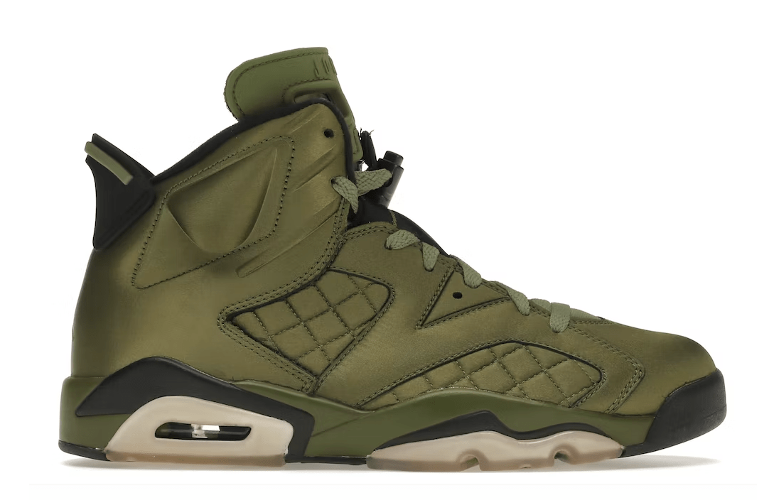 The second Air Jordan 6 Retro "Pinnacle" edition dropped in Fall of 2017. Nicknamed the "Promo Jacket" edition, this pair draws direct inspiration from the satin flight jacket worn by Michael Jordan during a 1991 episode of Saturday Night Live. The sneaker comes in a palm green and black colorway. Sporting a green-based premium satin upper to match the jacket with quilted side panels, black accents and icy blue translucent hits on the outsole. Their release date was September 1st, 2017 where they were available at select Jordan Brand retailers worldwide in men's sizing. Retail was $225 and they came in special packaging. If you're a longtime Jordan fan and enjoy the history and nostalgia that comes with certain releases, then this Air Jordan 6 Retro Pinnacle is for you. Those of you on the hunt for a pair can buy them online now. If you have one to sell, hit up the marketplace and see what they are currently going for.