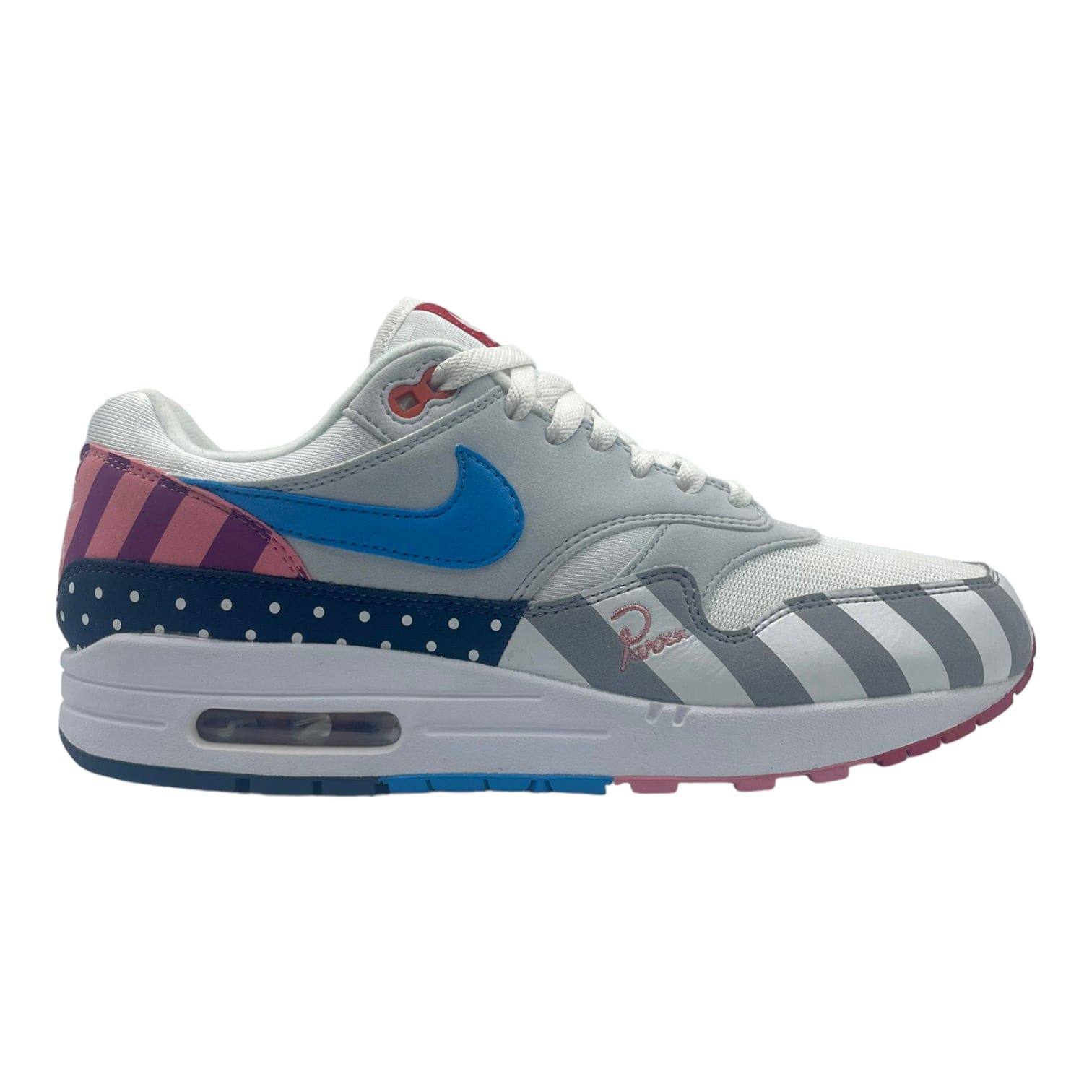 Legendary Dutch artist Parra and Nike have once again teamed up for their first collab in over a decade! Parra previously worked on legendary pairs of Air Max 1s, including the "Cherrywood" and "Amsterdam" colorways - staples amongst collectors. This Nike Air Max 1 takes abstract interpretations of cityscape and landscape imagery, applying it to the Air Max's iconic silhouette. Using his traditional color palette of white, light blue, red, grey, and pink, this pair is sure to turn heads with its unique and vibrant style. Releasing in limited numbers, this pair retailed in July 2018.