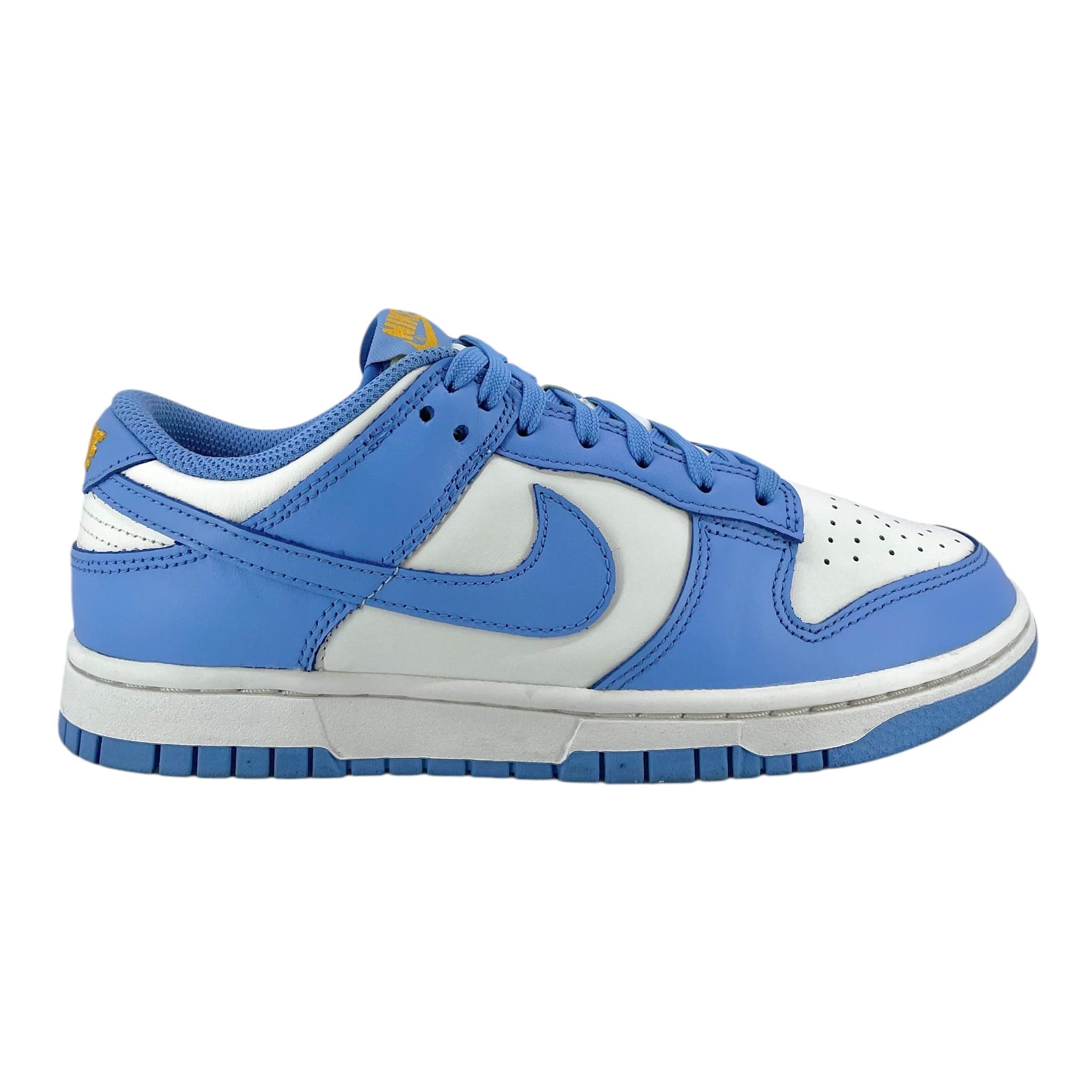 Nike paid homage to the West Coast with the women's Nike Dunk Low Coast (W). The Coast colorway is reminiscent of UCLA Bruin school colors, prominently featuring light blue, white, and yellow. White and light blue leather comprise the upper of the Nike Dunk Low Coast (W), with white on the vamp and medial panels and light blue on the overlay and Swoosh. Hits of yellow are present in the Nike Air branding on the tongue and heel. A white midsole and light EVA outsole complete the design. The women's Nike Dunk Low Coast (W) released in February of 2021 and retailed for $100.