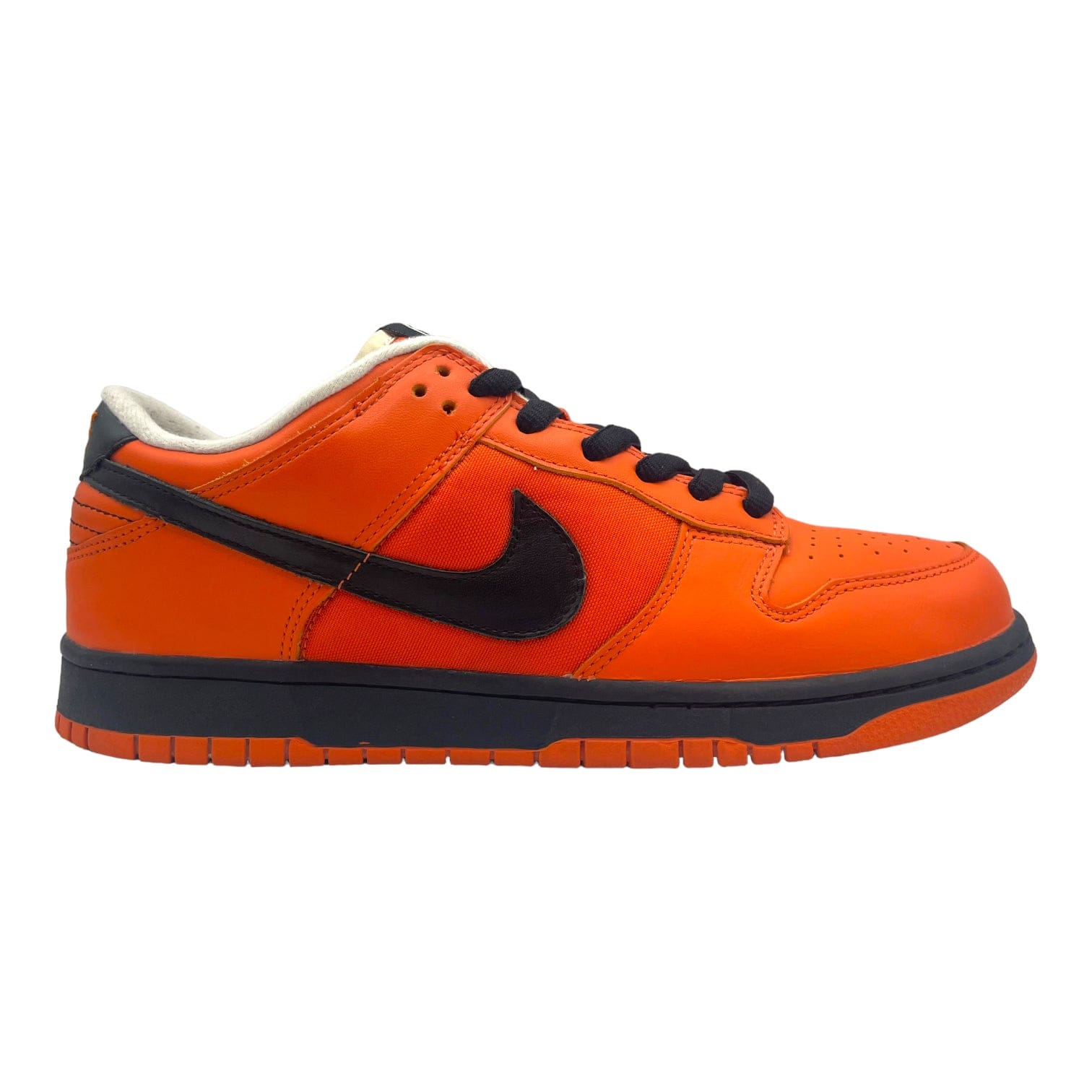 First sketched by designer Peter Moore, the Nike Dunk has been a way to show individual expression since 1985. Released in 2004 for the World Cup festivities, the Nike Dunk Low 'Holland' features a leather upper in a Safety Orange and black colorway representing the country of the Netherlands, otherwise known as Holland. A black midsole adds contrast between a Safety Orange outsole.