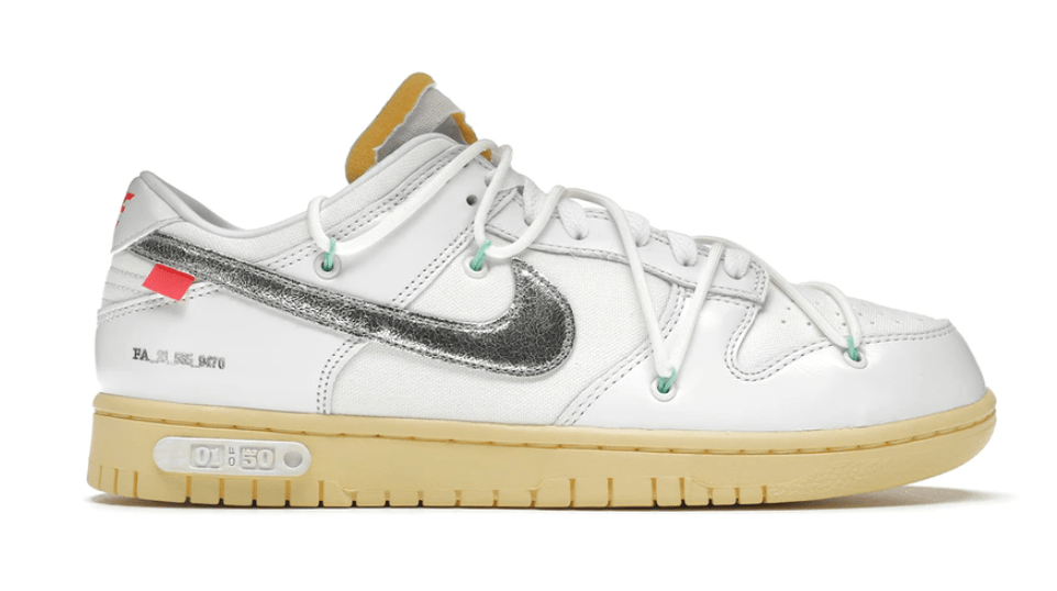 Origins NYC offers this pair of new Nike Dunk Low in the Off-White Lot 1 color way.