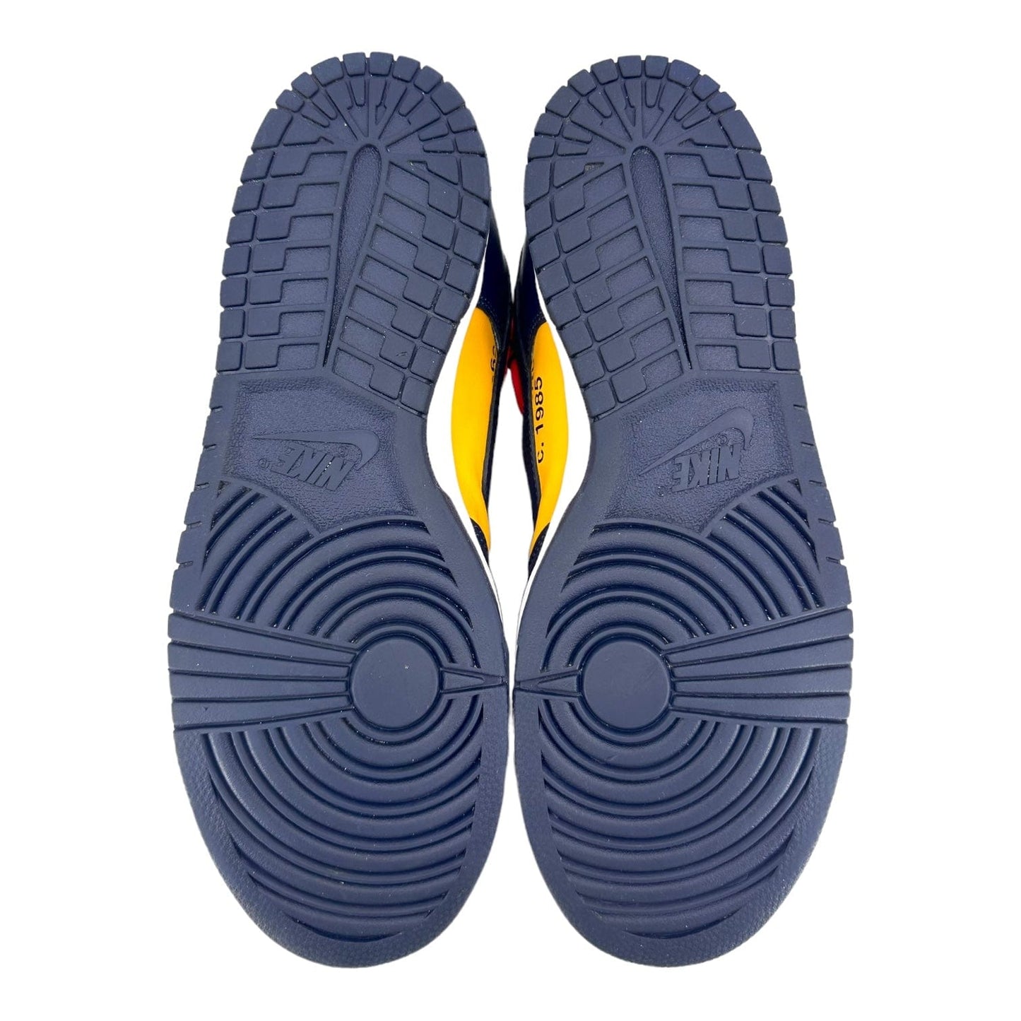 Virgil Abloh pays homage to skate culture’s adoption of 1980’s Nike Basketball silhouettes with the Nike Dunk Low Off-White Michigan. When Nike unveiled the Dunk as the centerpiece of their Nike College Color’s program in 1985, seven different colleges were represented in the first colorways offered, with Michigan was one of the first schools.