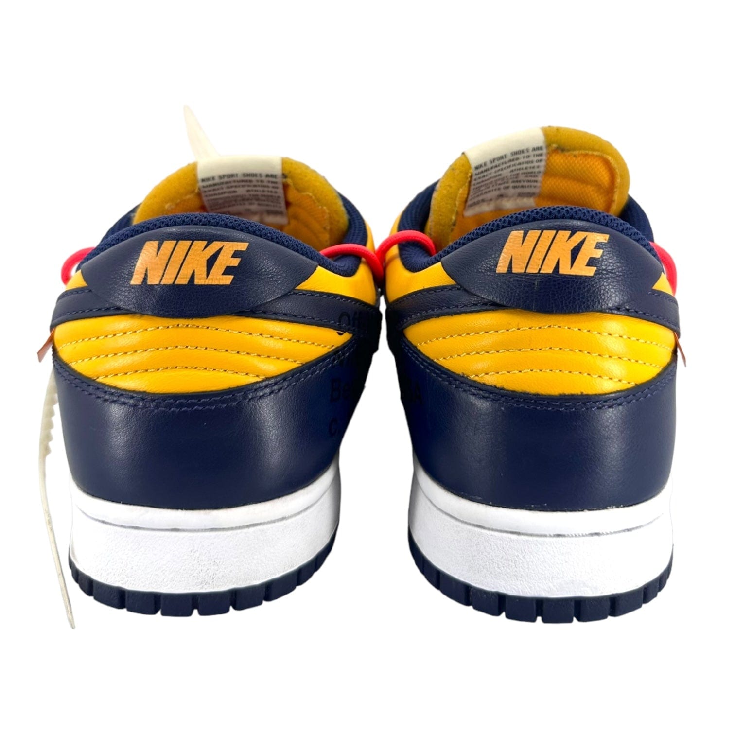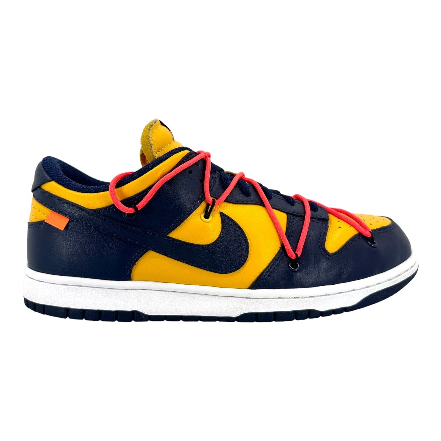 This Dunk Low is comprised of a university gold leather upper with midnight navy overlays. A unique secondary lacing system, zip-ties, and signature Off-White text on the sides completes the design. These sneakers released in December of 2019 for $170.
