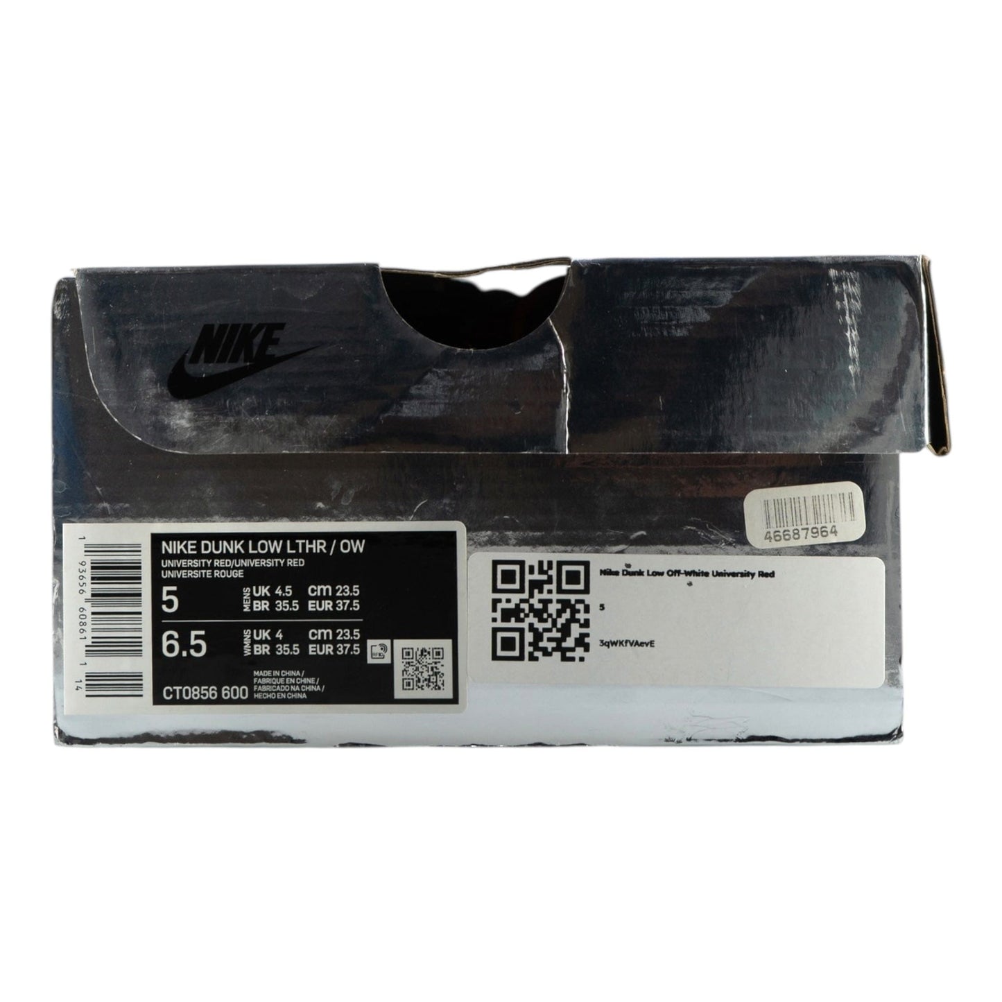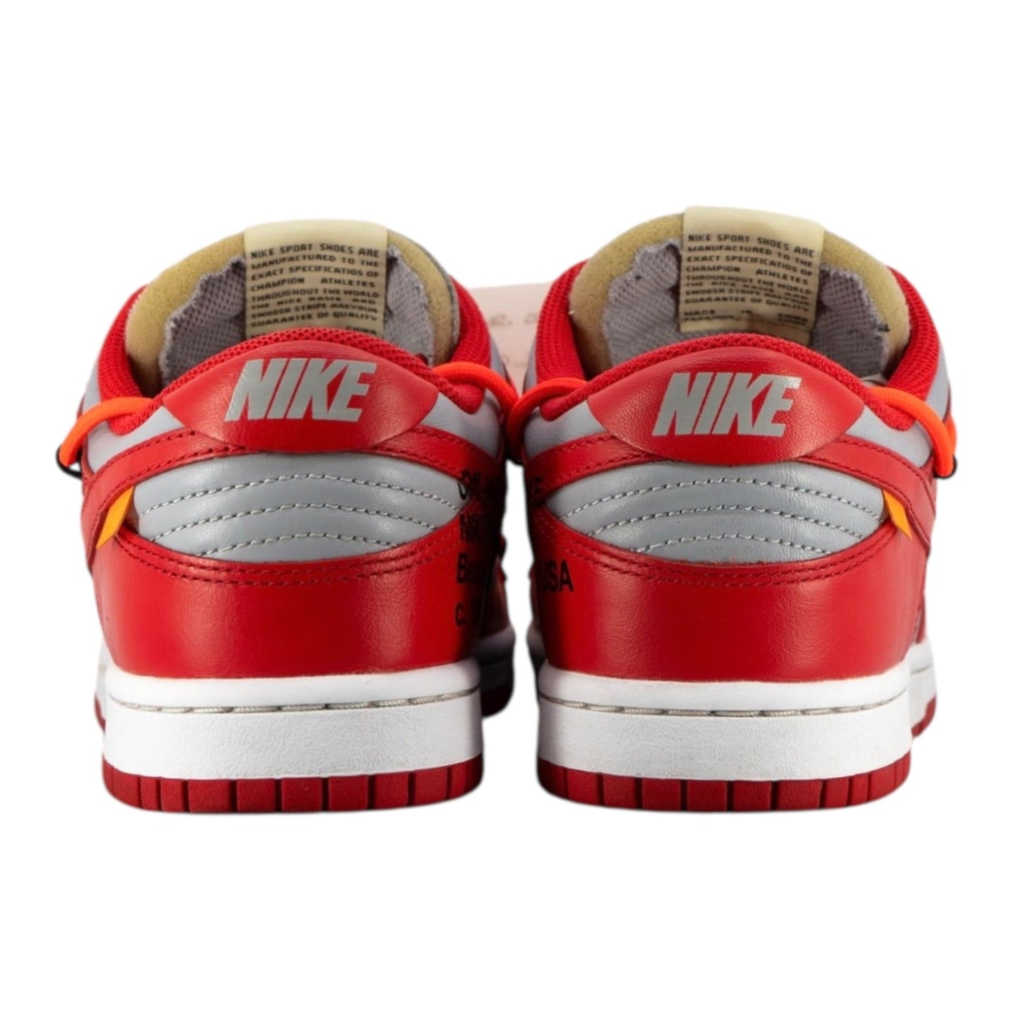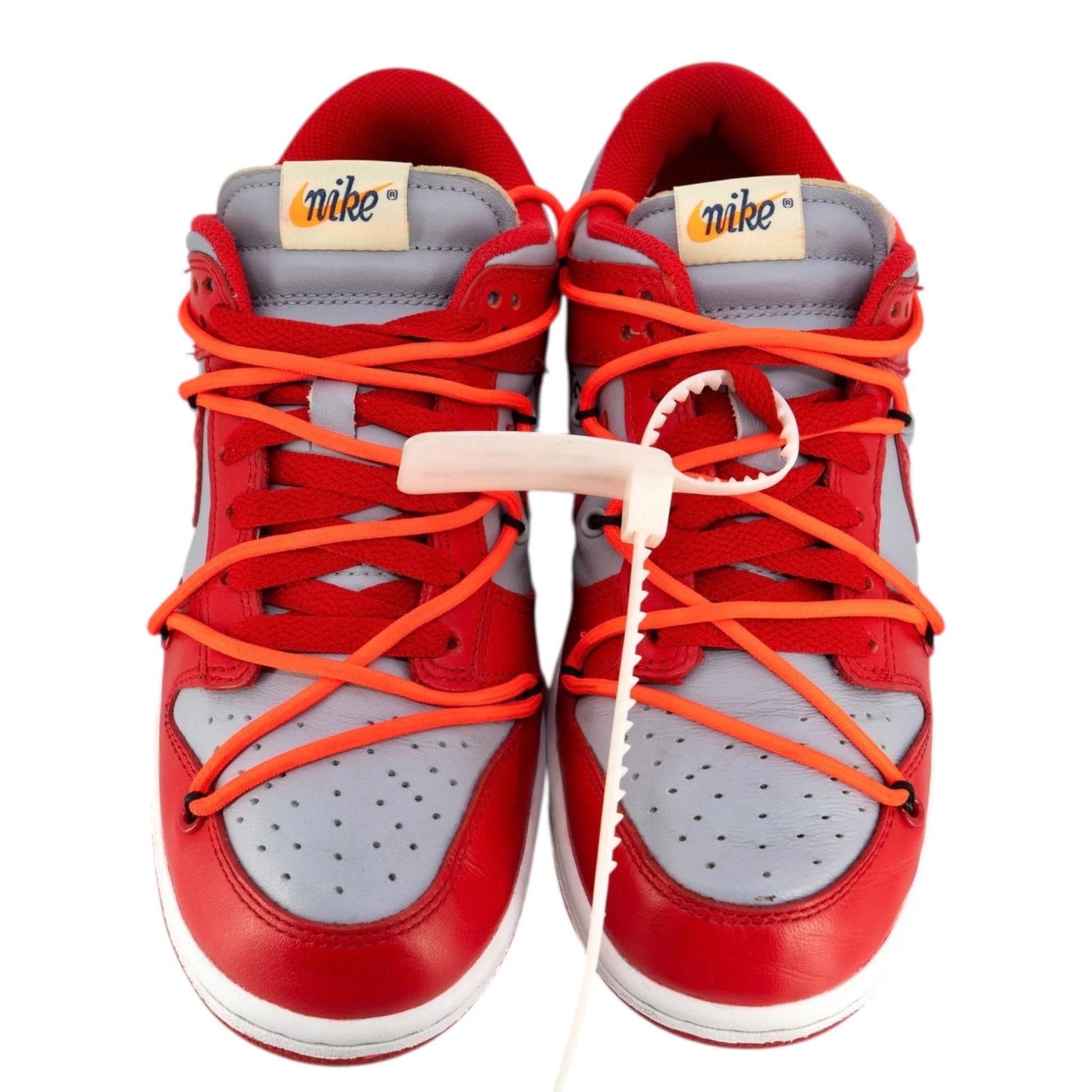 Virgil Abloh pays homage to skate culture’s adoption of 1980’s Nike Basketball silhouettes with the Nike Dunk Low Off-White University Red. When Nike unveiled the Dunk as the centerpiece of their Nike College Color’s program in 1985, seven different colleges were represented in the first colorways offered. The university red colorway tributes UNLV’s school colors.