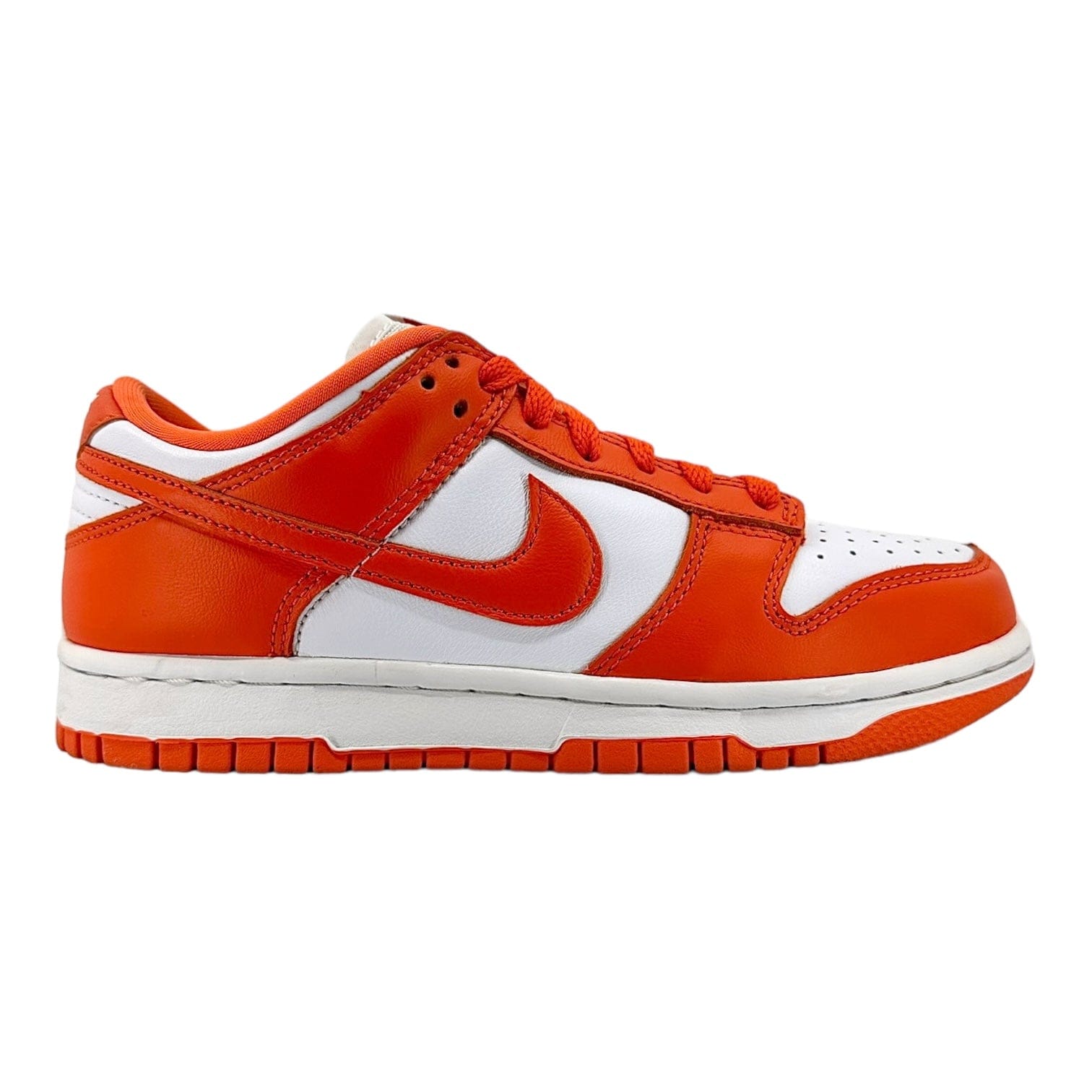 This Nike Dunk Low SP is composed of a white leather upper with orange blaze leather overlays. A white midsole, orange outsole, and classic Nike branding on the tongue complete the design. These sneakers released in March of 2020 and retailed for $100.