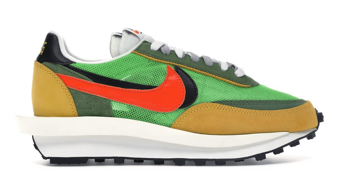 Start stunting harder with a fresh pair of the Nike LD Waffle sacai Green Gusto in your collection. This Nike LD comes with a green upper plus orange accents, orange Nike "Swoosh", black Nike "Swoosh", white midsole, and a black sole. These sneakers released in May 2019 and retailed for $155.