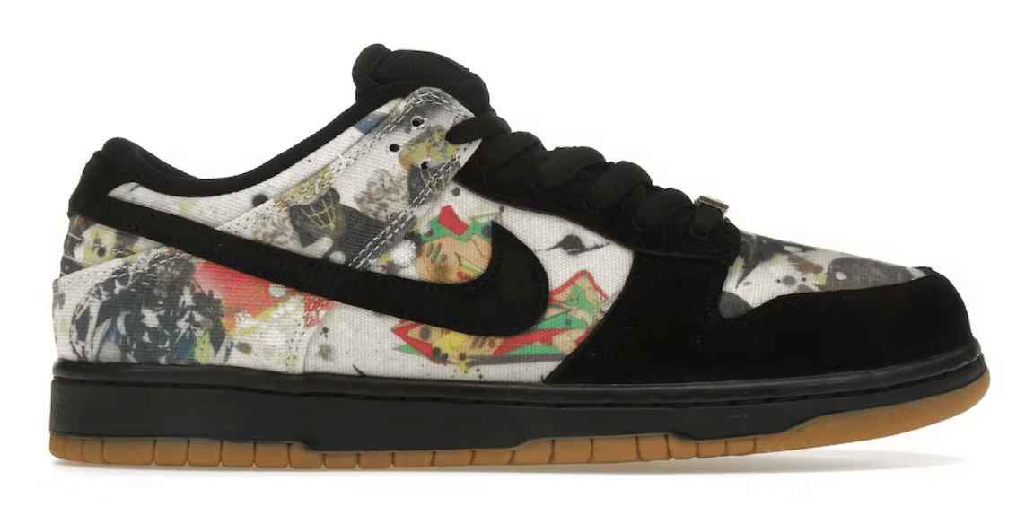 Supreme has once again teamed up with Nike for another highly coveted SB Dunk Low. The Nike SB Dunk Low Supreme Rammellzee released on August 31st, 2023, for a retail price of $138. The sneaker sold out quickly at Supreme locations globally.