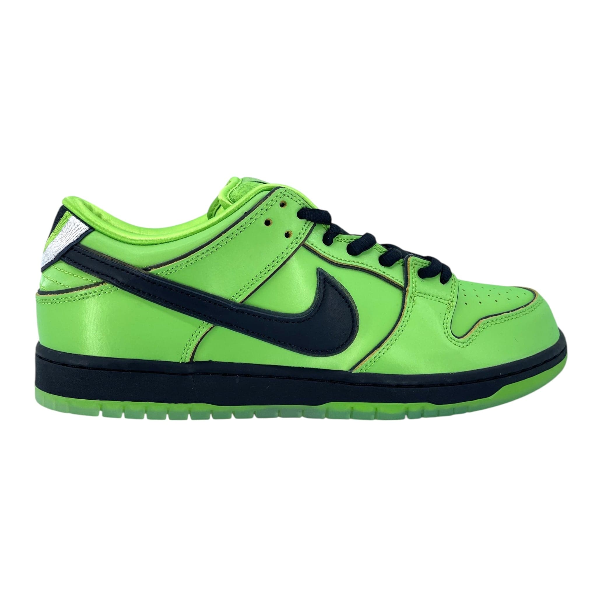 The sneaker's striking color palette is complemented by its high-quality construction and attention to detail, embodying the spirit of the fierce Powerpuff Girl. This Dunk Low is not just a shoe; it's an expression of Buttercup's unyielding energy and charisma.
